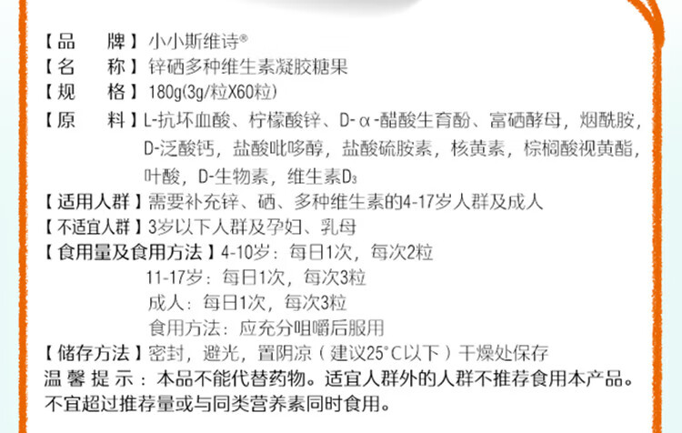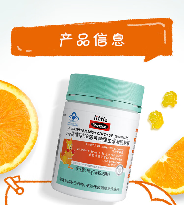 Swisse小小斯维诗锌硒多种维生素凝胶糖果60粒装