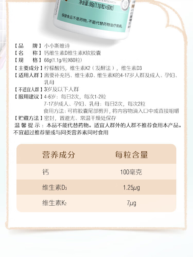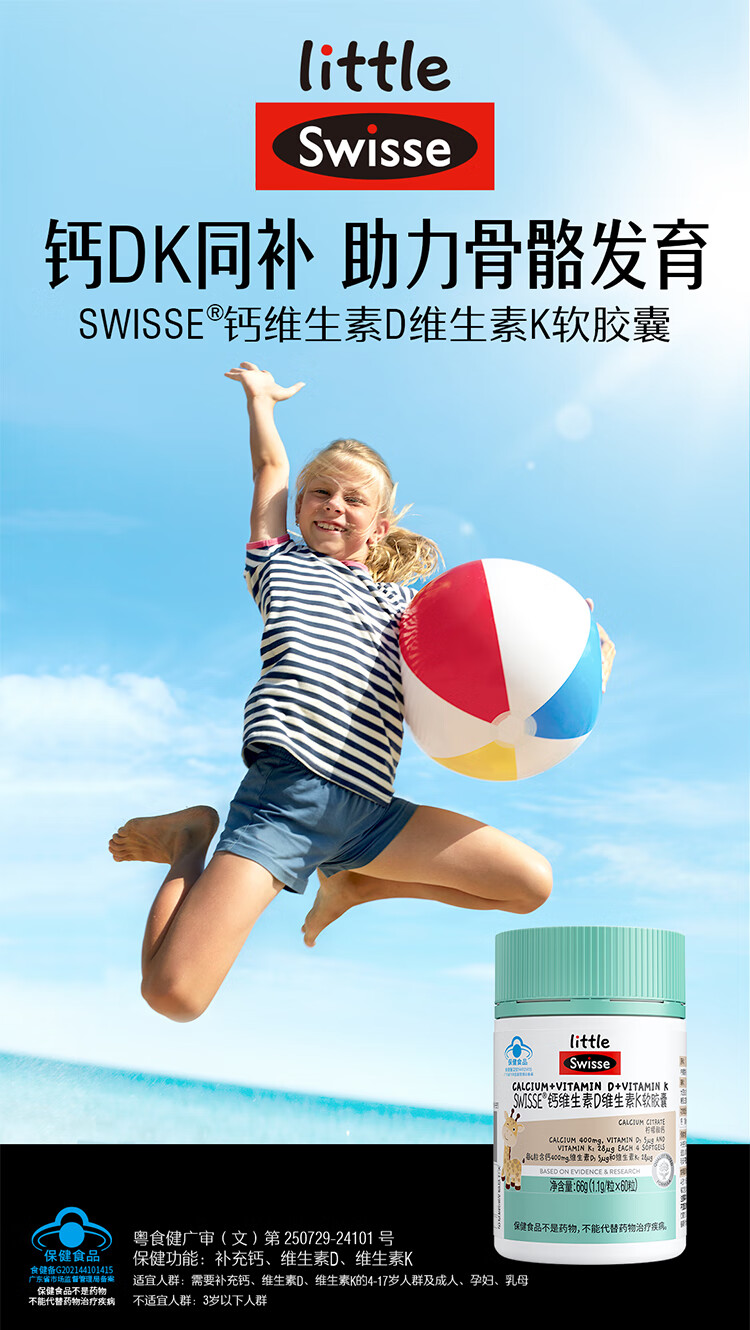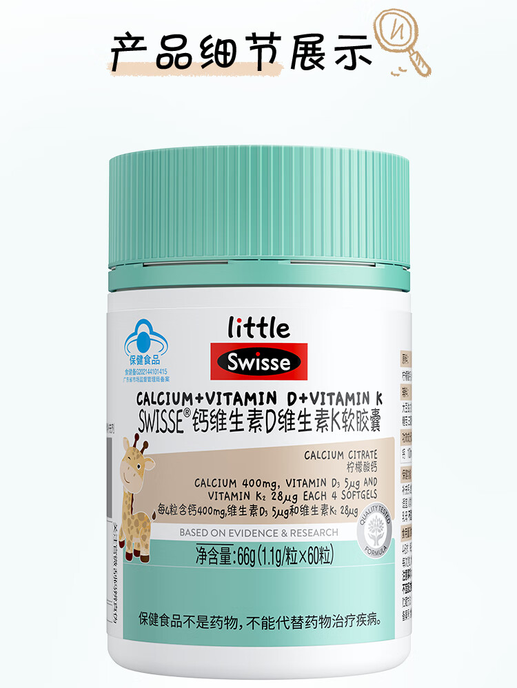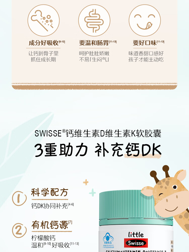 Swisse小小斯维诗钙维生素D维生素K软胶囊 60粒装