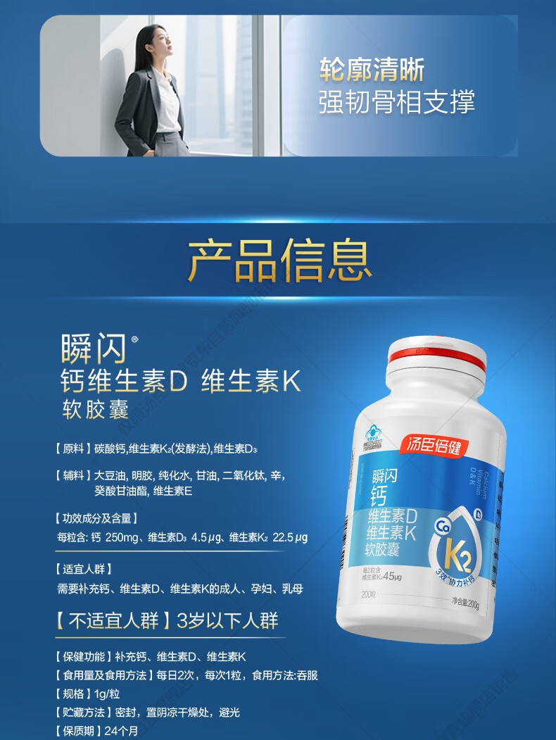 汤臣倍健钙维生素D维生素K软胶囊(200粒)彩盒装
