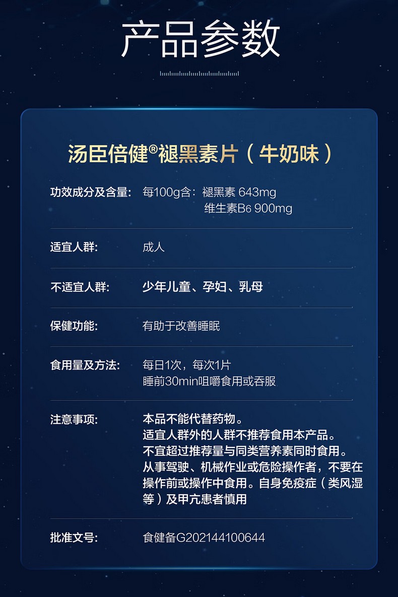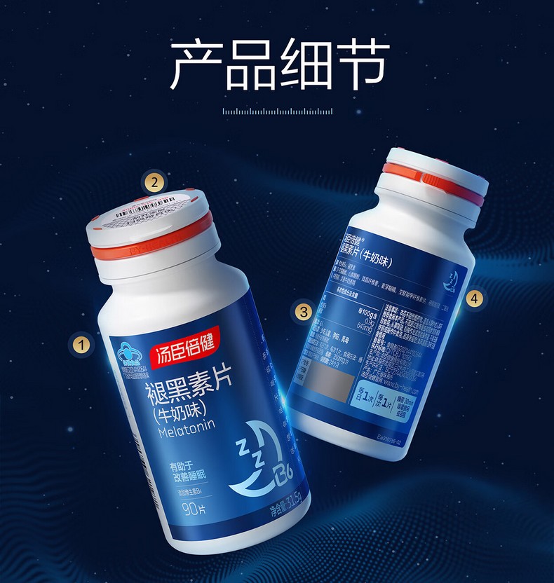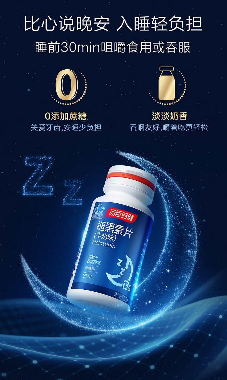 汤臣倍健褪黑素片(牛奶味)彩盒装升级版(90片)