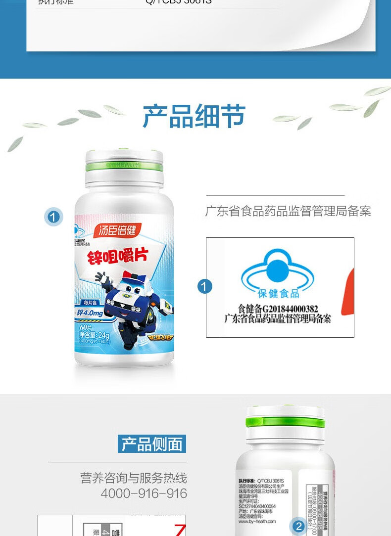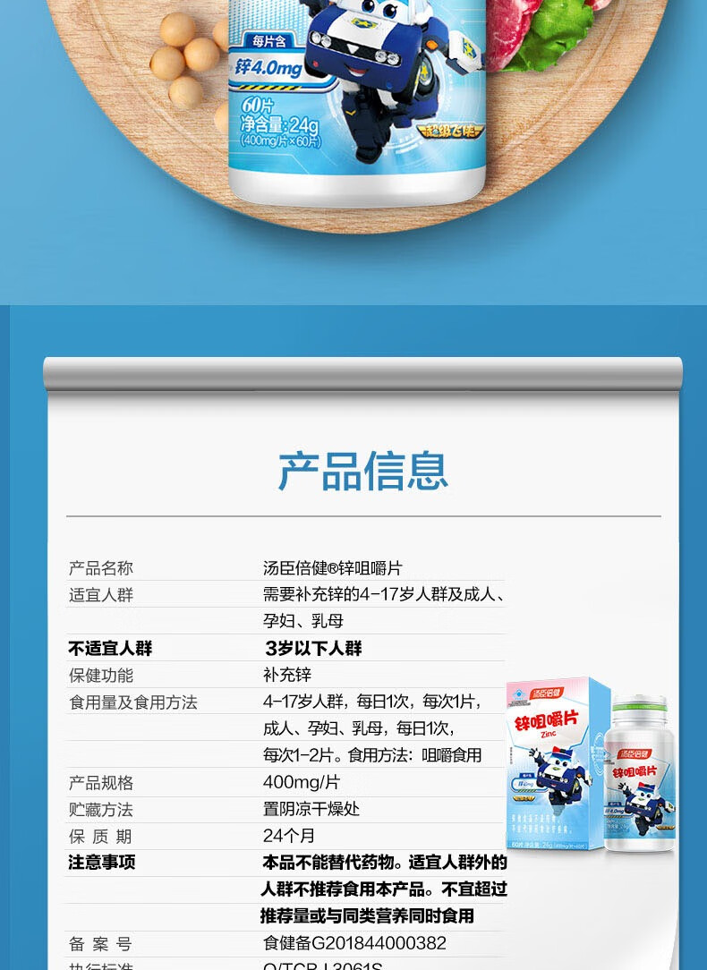 汤臣倍健锌咀嚼片-超级飞侠装(60片)