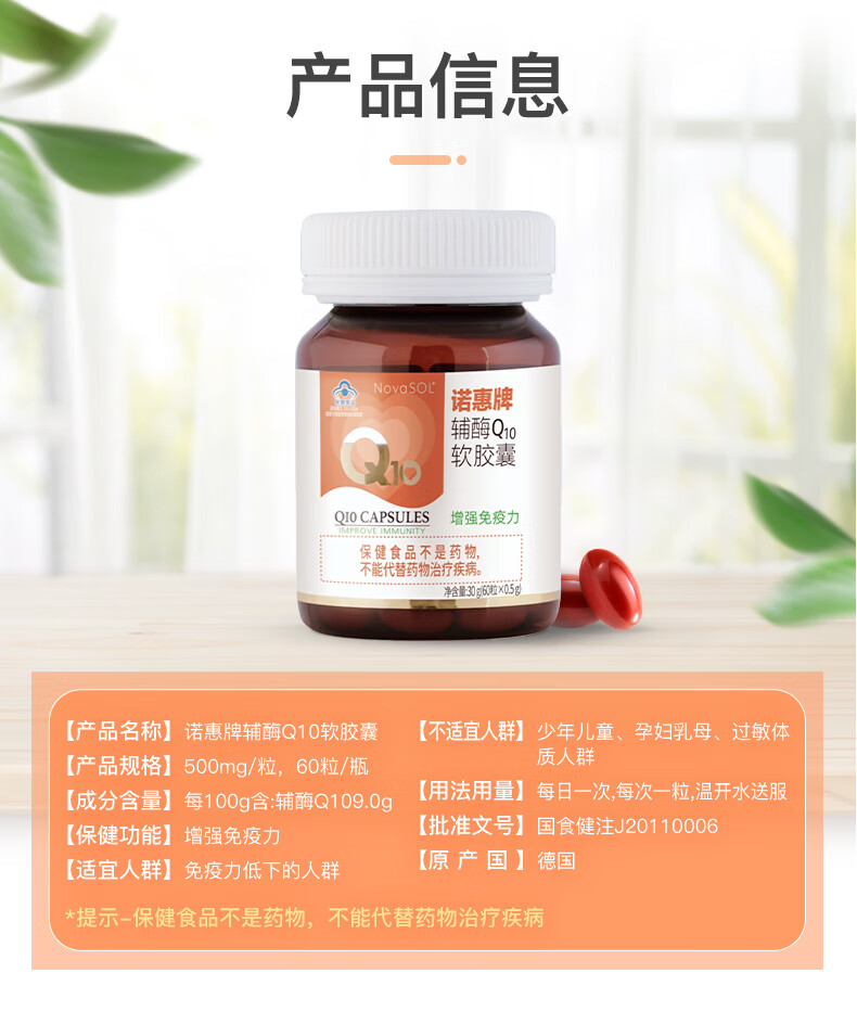 诺惠牌辅酶Q10 60粒 *2瓶(礼盒)