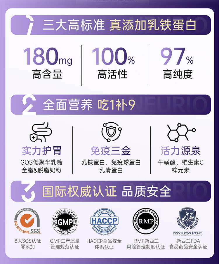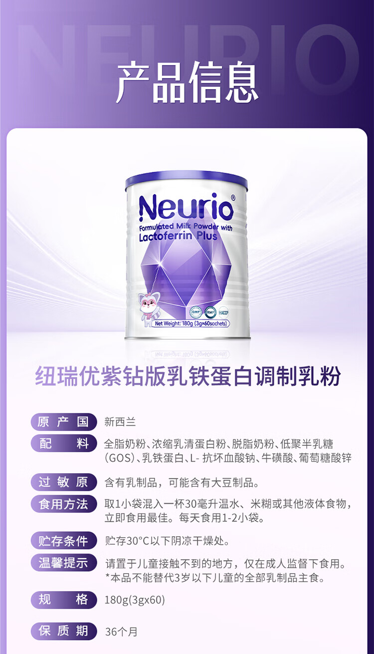 Neurio®纽瑞优乳铁蛋白调制乳粉(免疫版)180g*2罐(礼盒装)