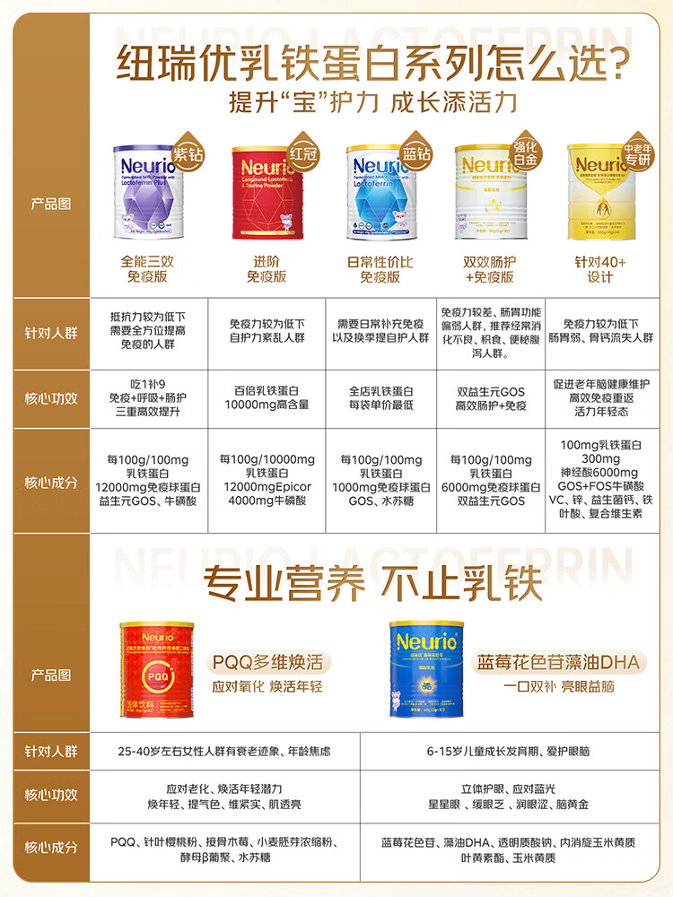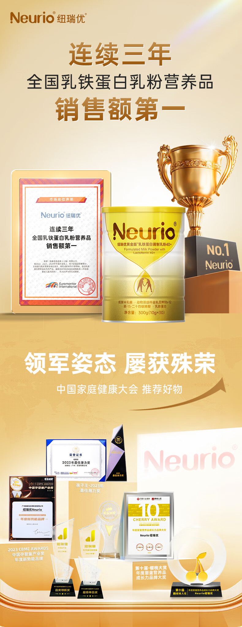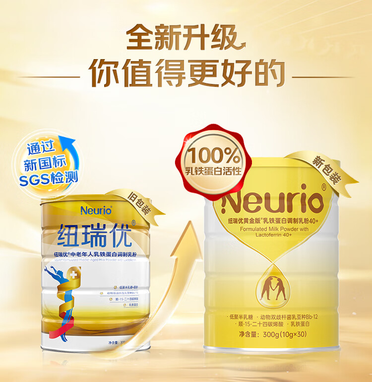 纽瑞优Neurio®黄金版高钙乳铁蛋白调制乳粉300g 40+pro *2罐(礼盒装)(价格需找经理询价)