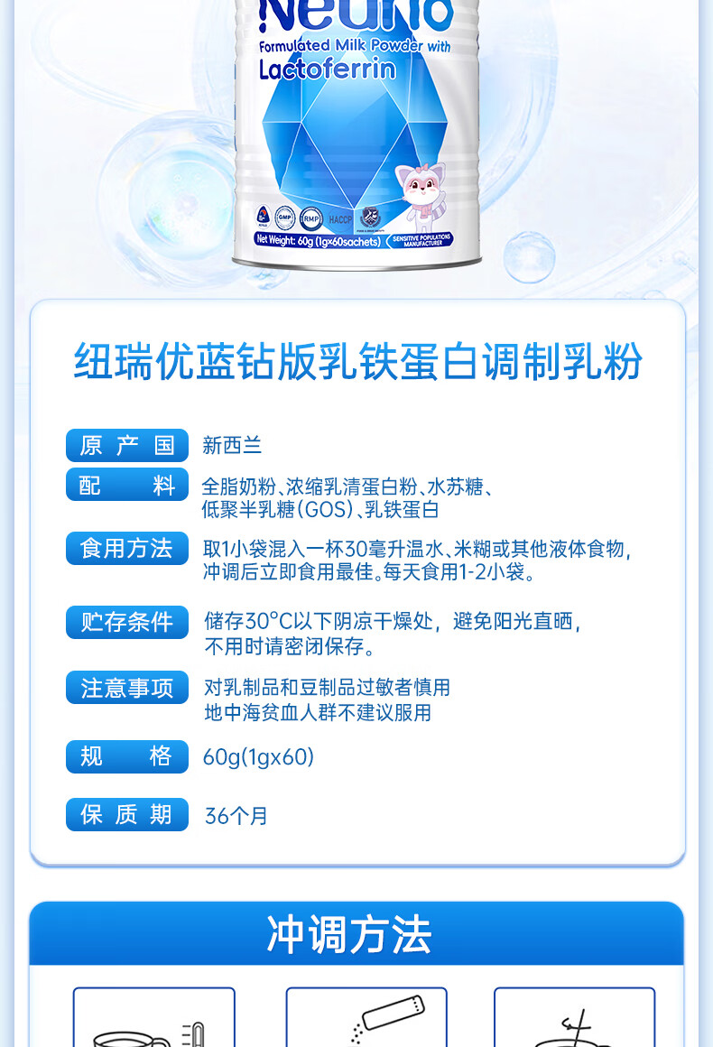 Neurio®纽瑞优蓝钻版乳铁蛋白调制乳粉60g