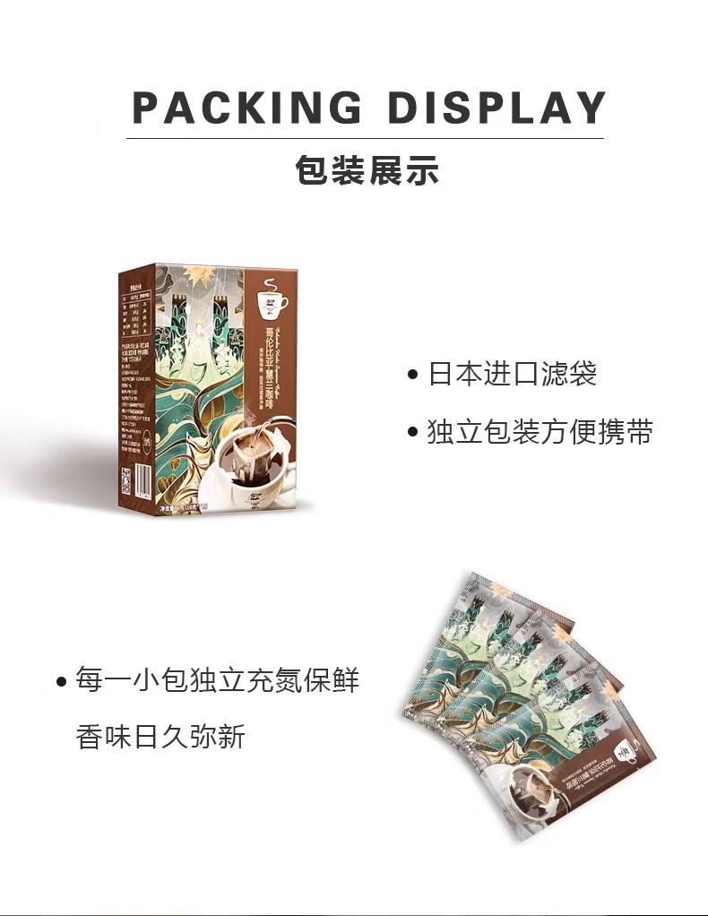 " 1、耶加雪菲/黄金曼特宁/哥伦比亚挂耳*2盒(7包*10g/包)