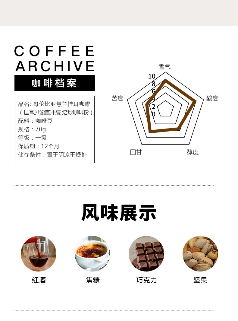 【野鼬咖啡】哥伦比亚-慧兰咖啡-挂耳咖啡70克(10克*7包)