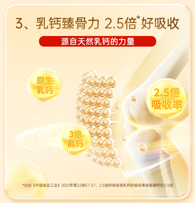 4、100%天然乳钙,带来2.5倍钙吸收率,3倍钙含量,钙补进骨子里