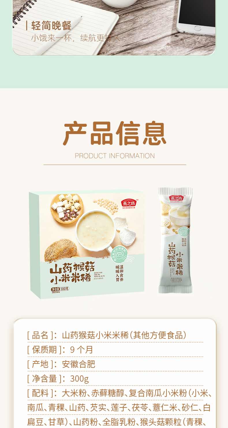 燕之坊 山药猴菇小米米稀 (300g盒装,条状粉)
