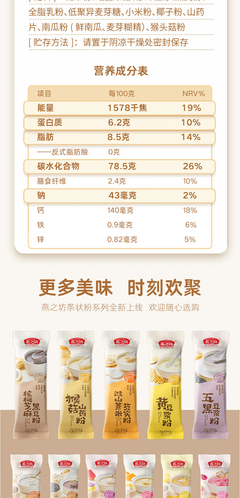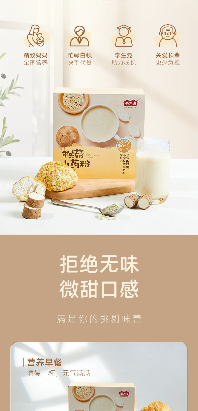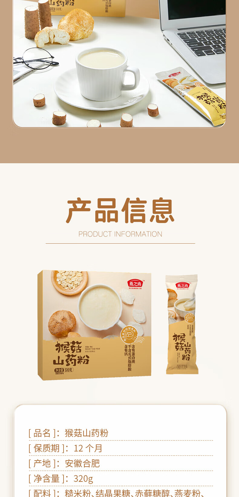 燕之坊 猴菇山药粉 (320g盒装,条状粉)