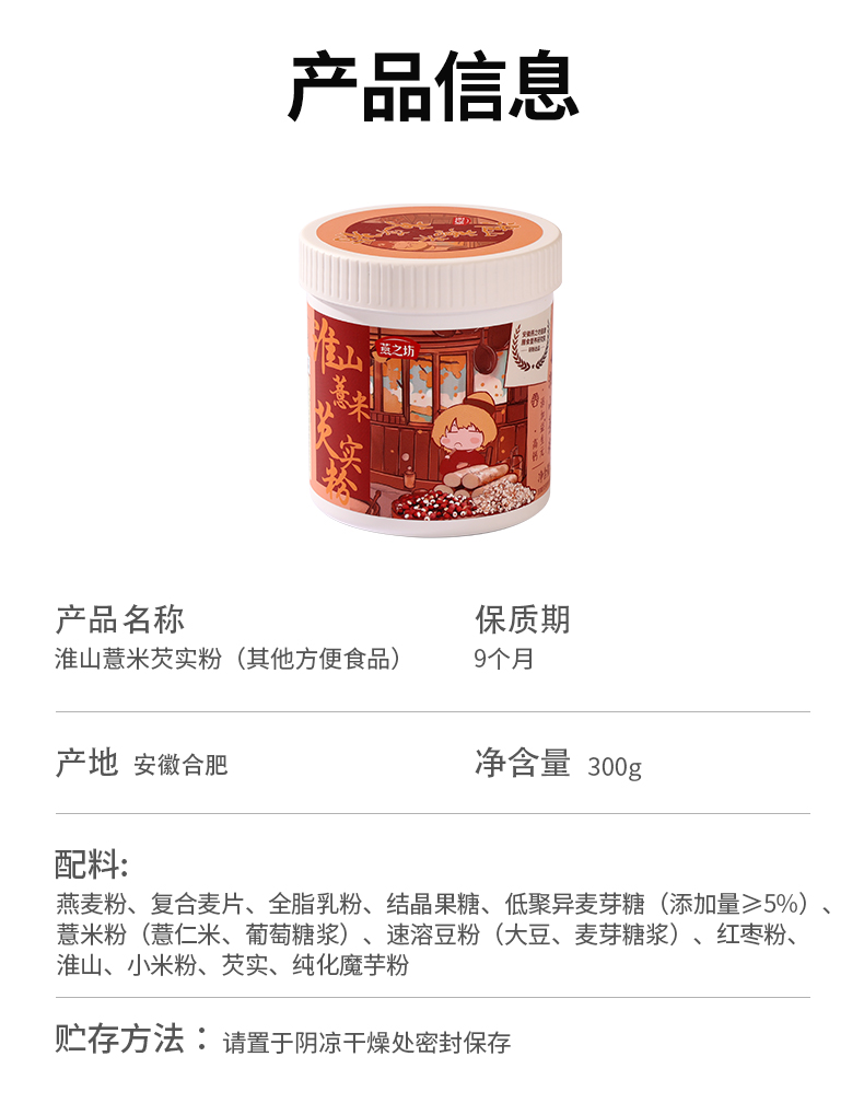 燕之坊淮山薏米芡实粉 300g(竖纹罐,定量装)