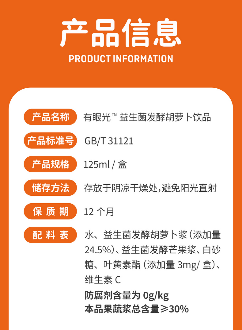 江中食疗有眼光益生菌发酵胡萝卜饮品20盒装(礼盒)有眼光饮品125mL20包