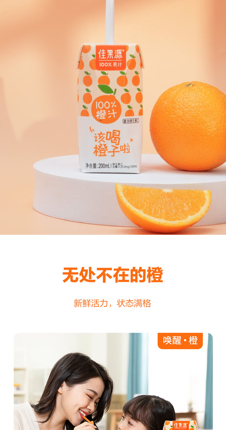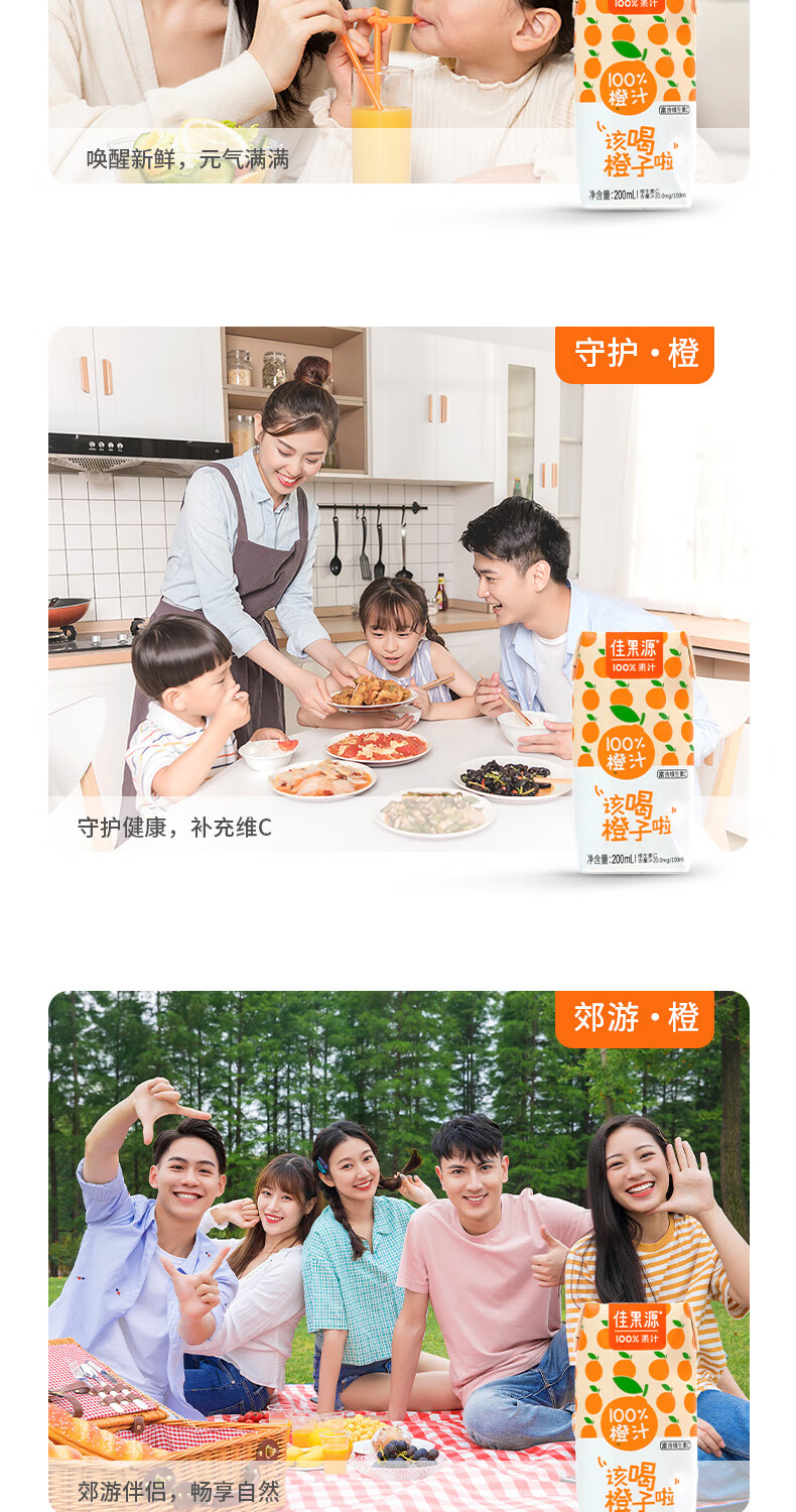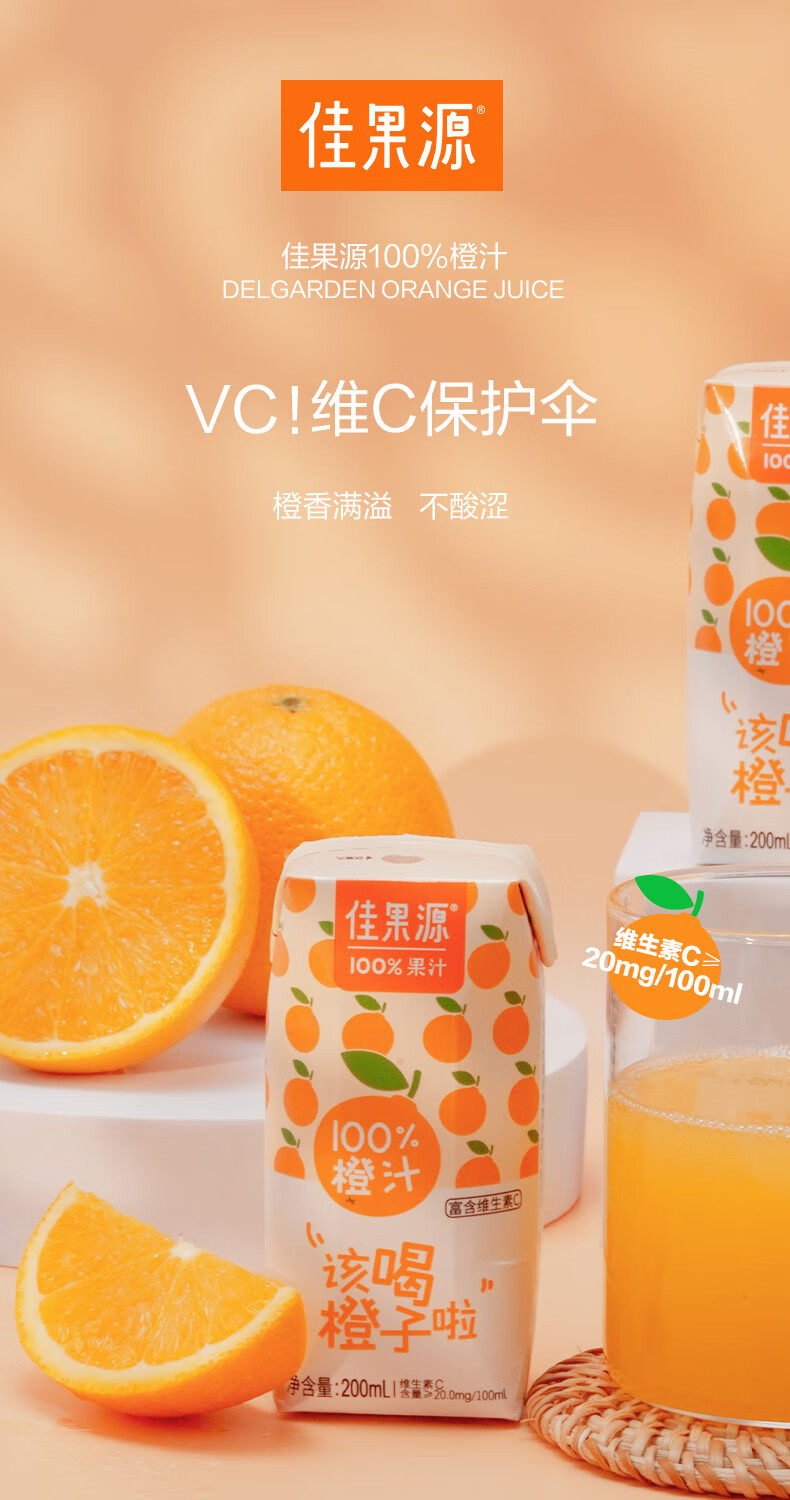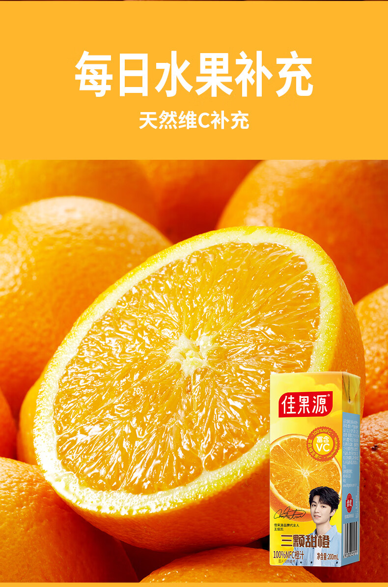 佳果源三颗甜橙100%NFC橙汁200ml*10礼盒装
