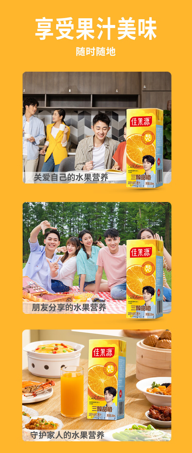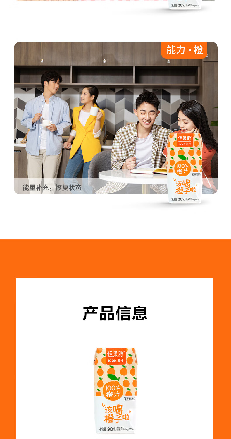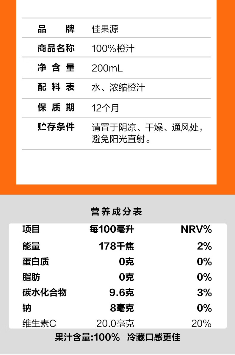 佳果源三颗甜橙100%NFC橙汁200ml*10礼盒装