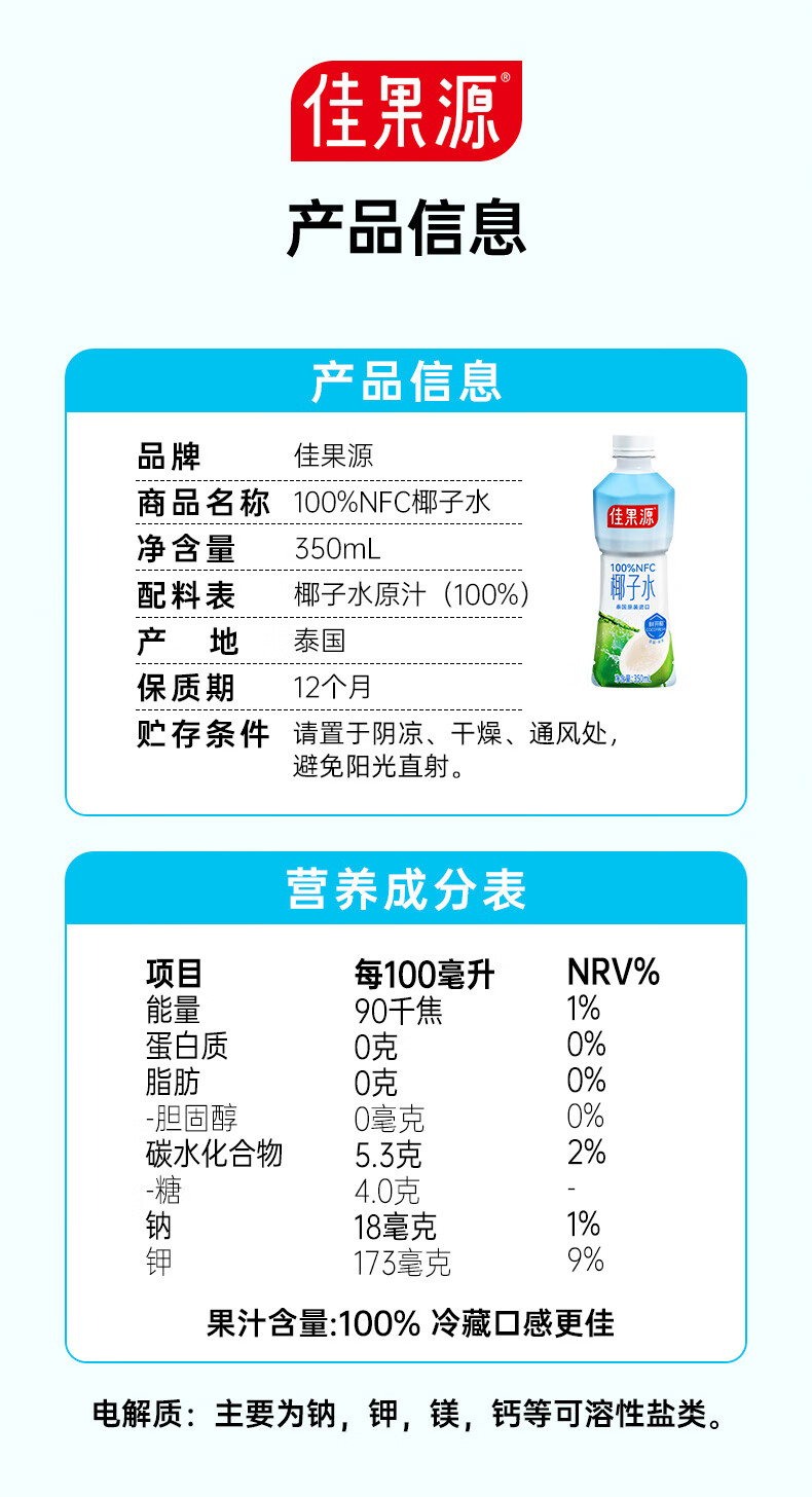 佳果源100%NFC椰子水350ml*8礼盒
