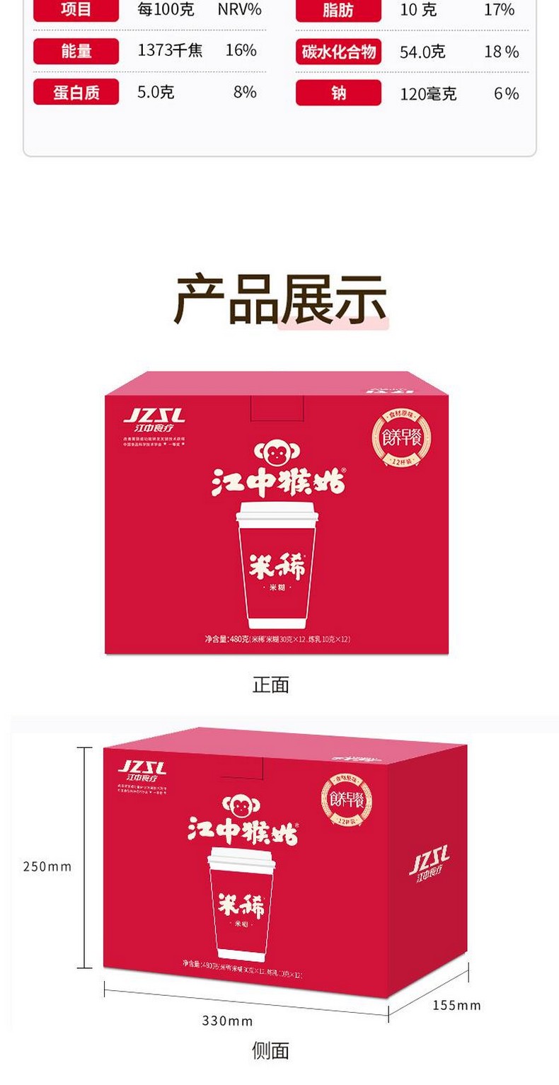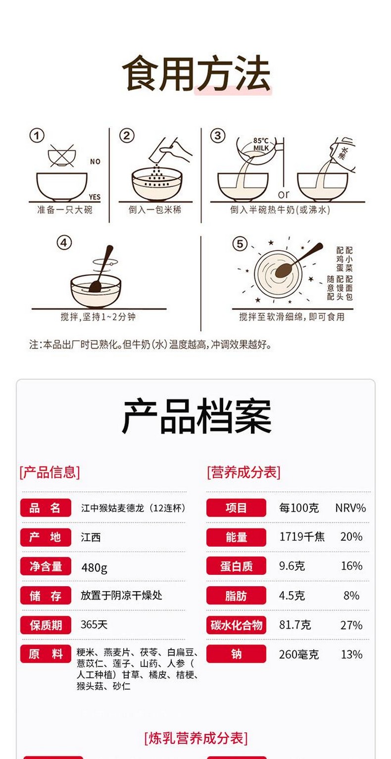 江中猴姑米稀早餐米糊12杯装(麦德龙专供)