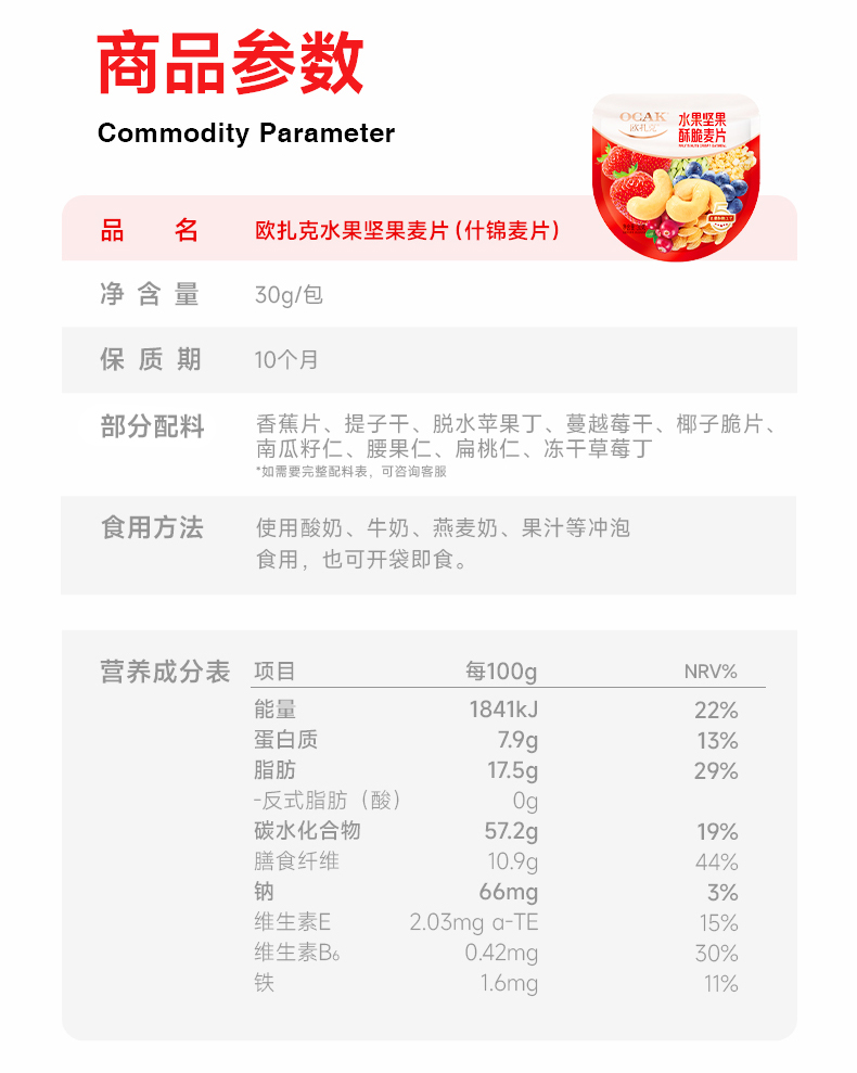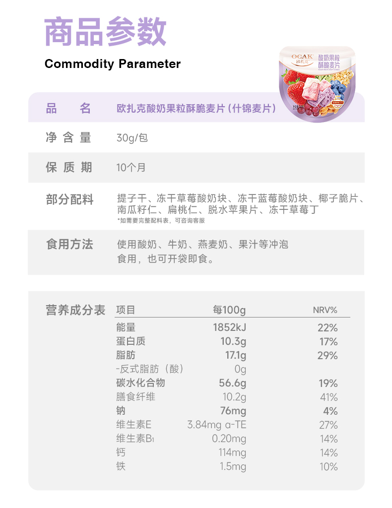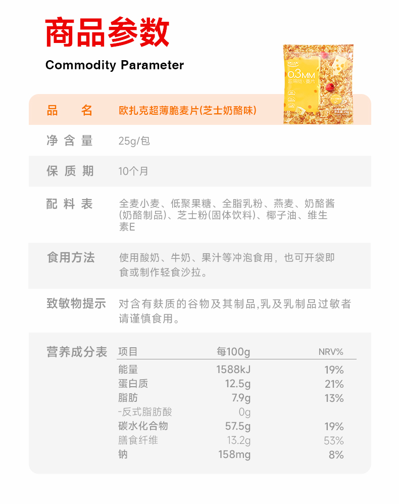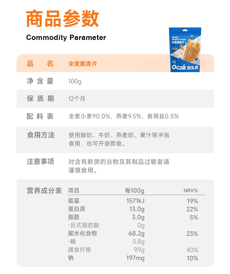 欧扎克全麦脆麦片0添加糖100g(2024版)