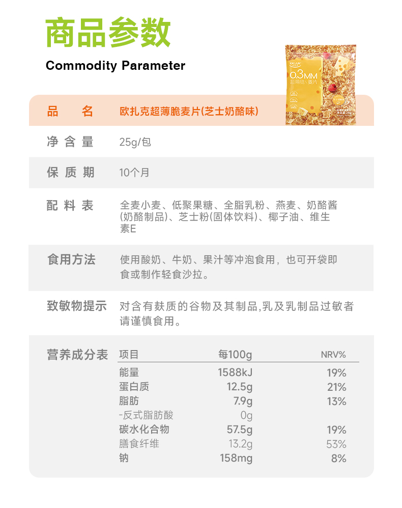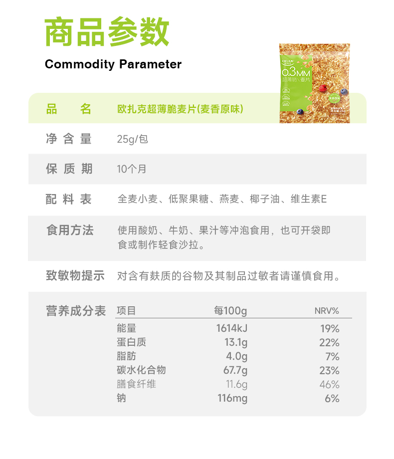 欧扎克超薄脆麦片礼盒750g(绿色款)