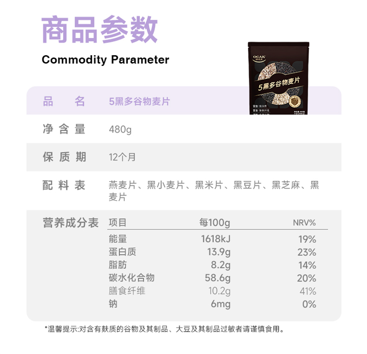欧扎克5黑多谷物即食冲调麦片*2袋