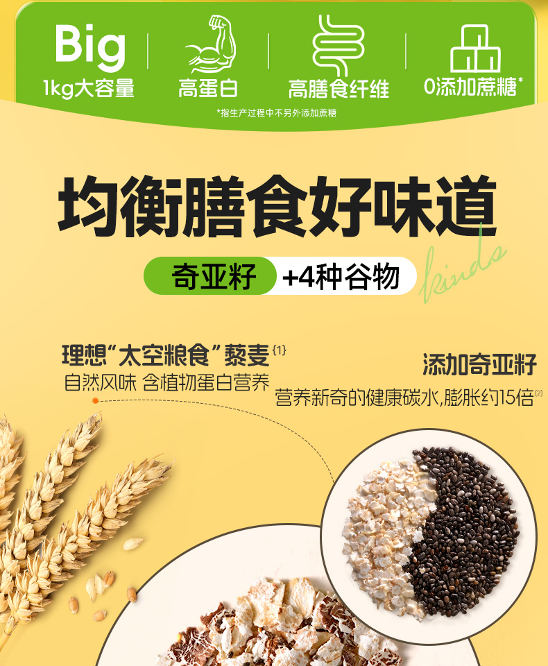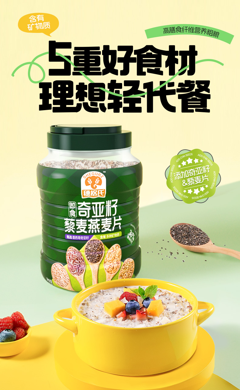 穗格氏 奇亚籽藜麦燕麦片1000g/罐