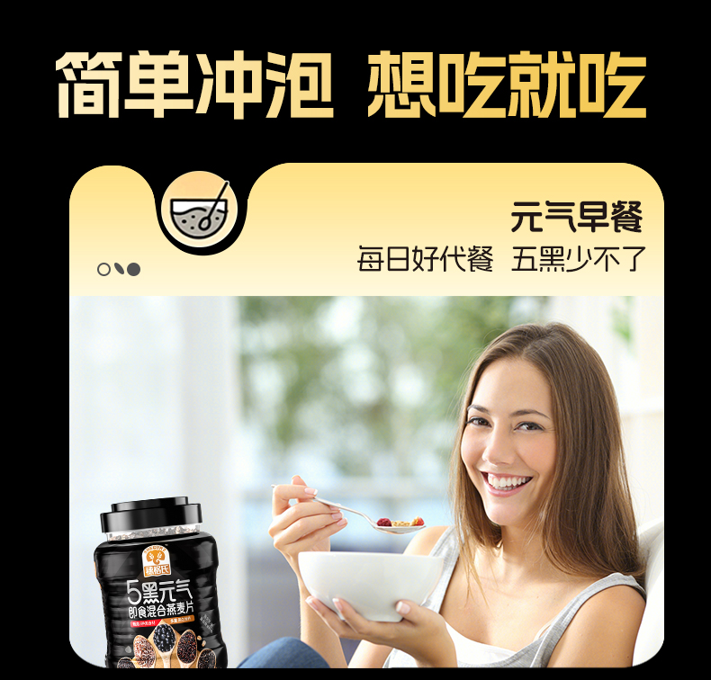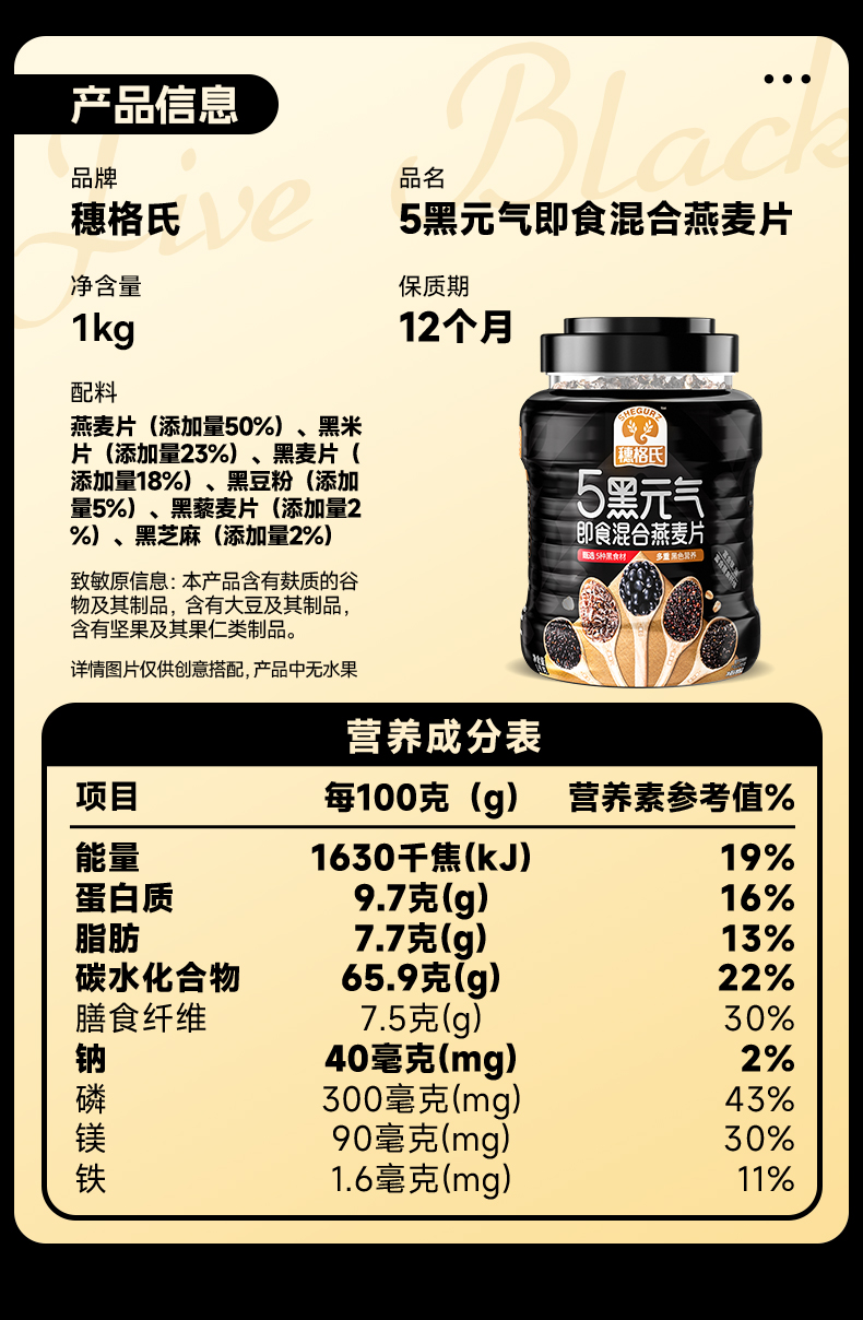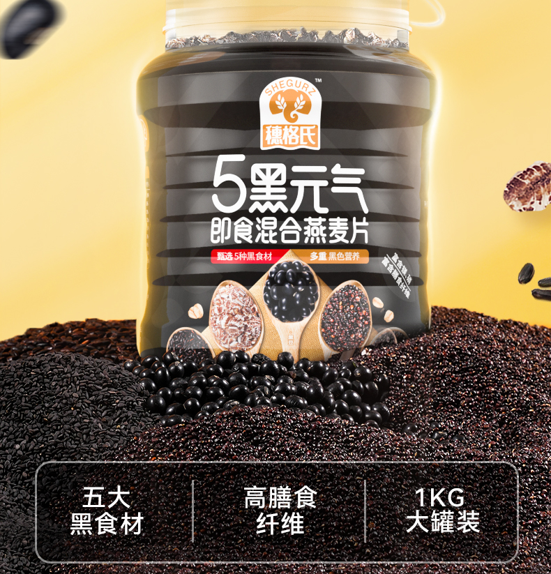 穗格氏 5黑元气混合即食燕麦片1000g/罐