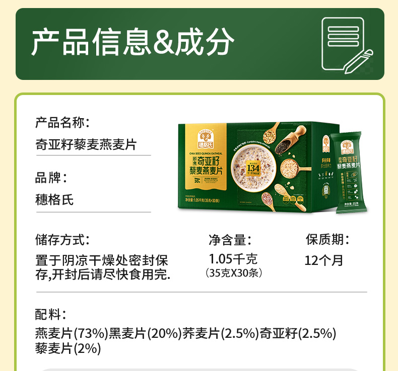 穗格氏 奇亚籽藜麦燕麦片礼盒1050g/提