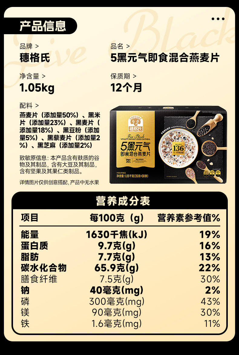 穗格氏 5黑元气即食混合燕麦片礼盒1050g/提