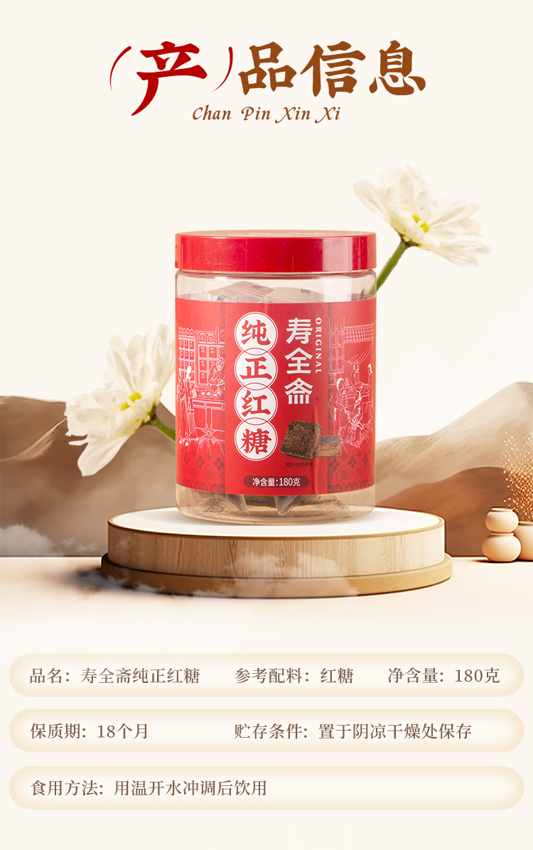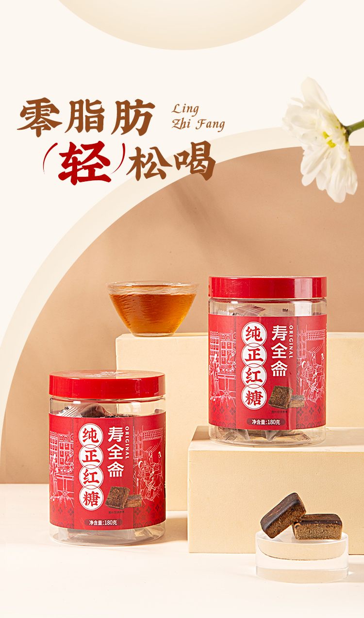 寿全斋 纯正红糖块 180g/罐