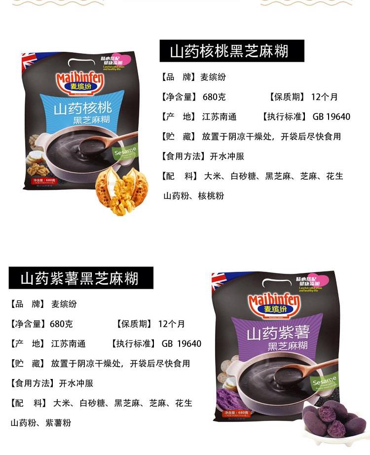• 麦缤纷 山药紫薯 /山药核桃 黑芝麻糊680g