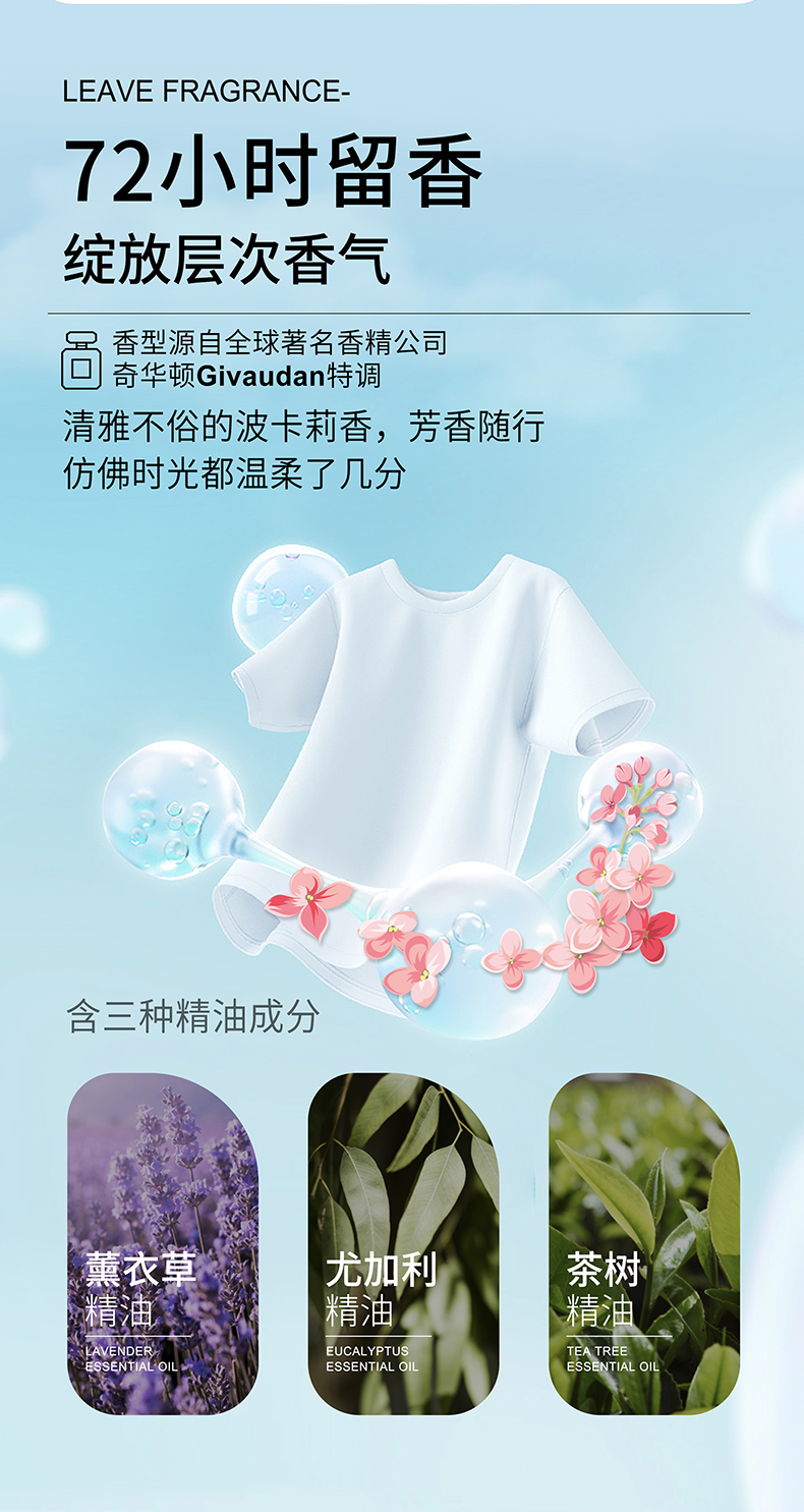 舒蕾波卡莉香精油香氛除菌浓缩洗衣凝珠576g(8gx72颗)