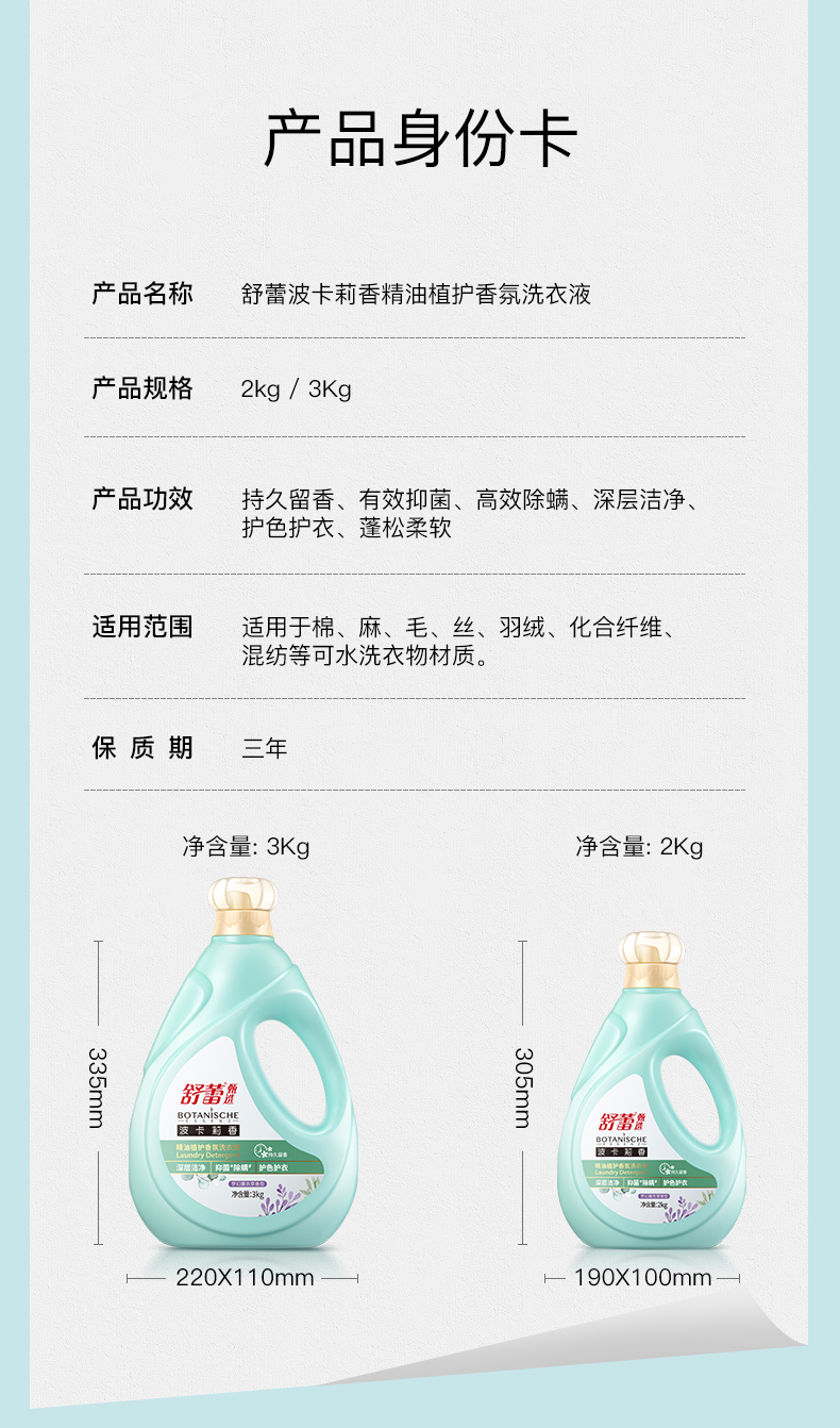 舒蕾波卡莉香精油植护香氛洗衣液2kg/3kg