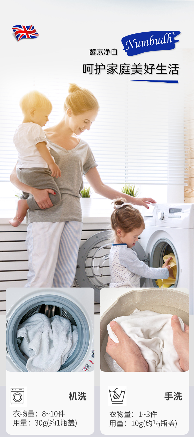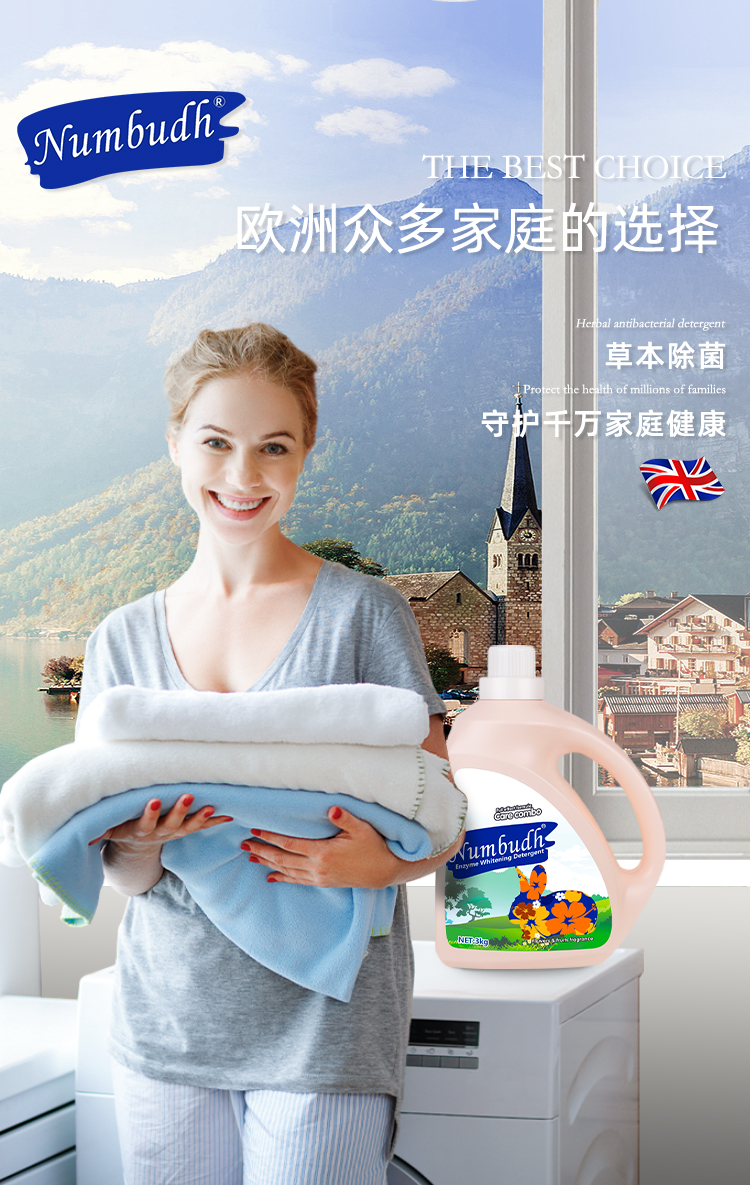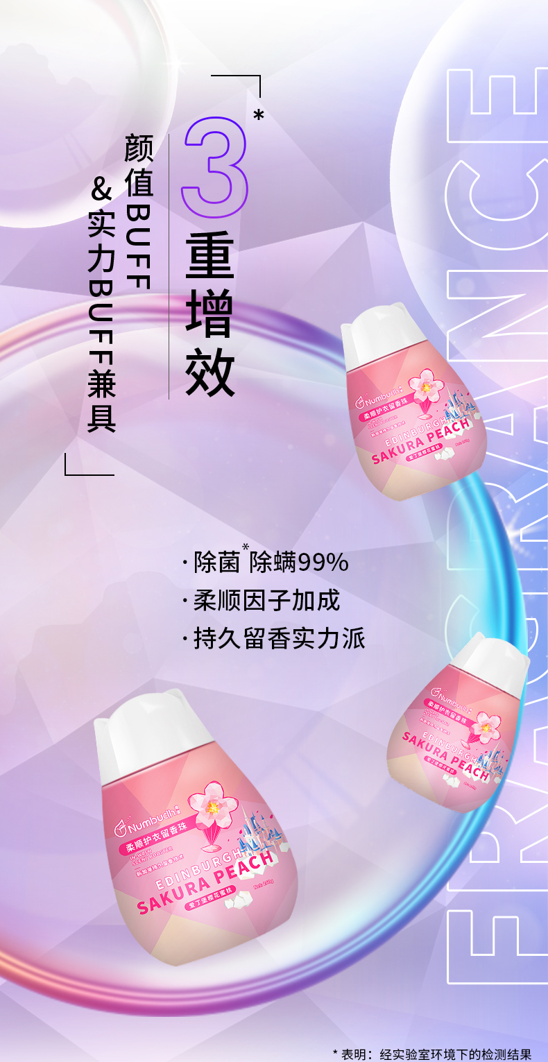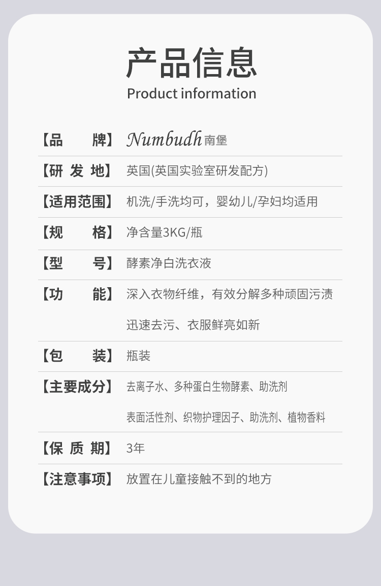 Numbudh南堡酵素净白洗衣液3kg+南堡护衣留香珠 爱丁堡樱花蜜桃260g