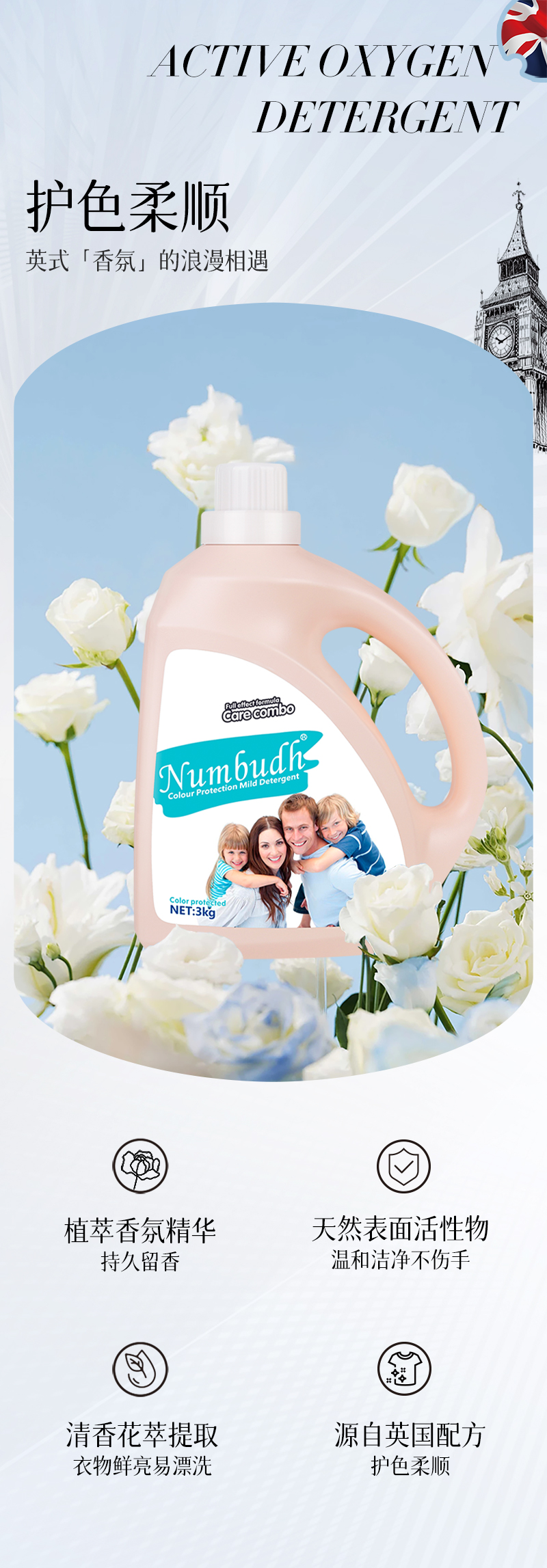 Numbudh南堡护色柔顺洗衣液3kg+南堡护衣留香珠 爱丁堡樱花蜜桃260g