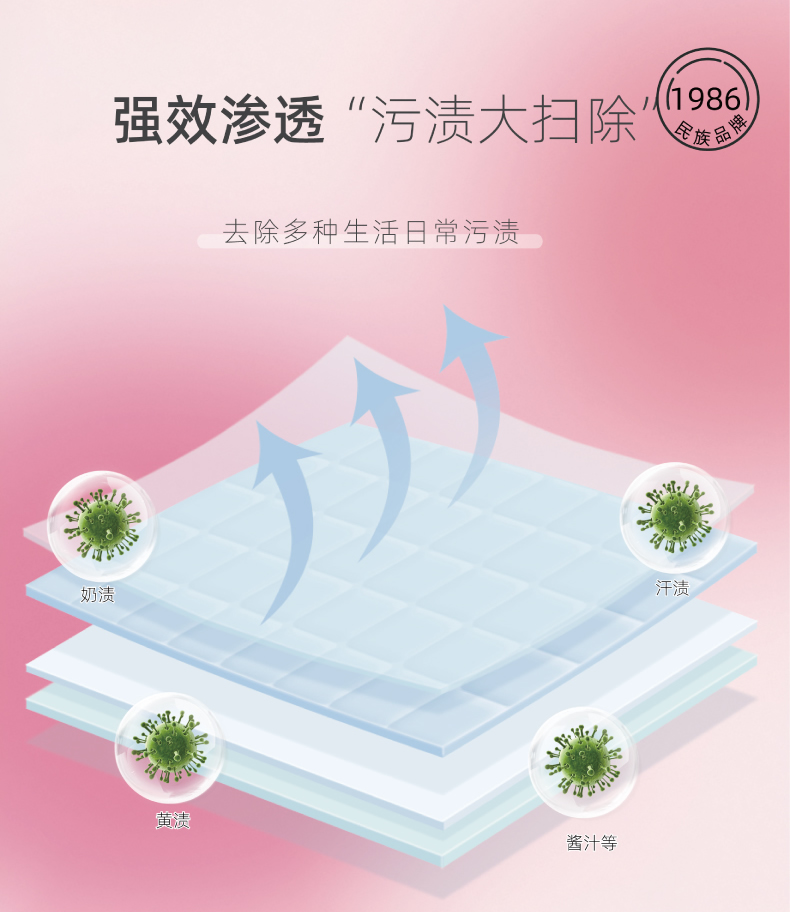 1.高效除菌去污:深层洁净衣物,有效祛除细菌和异味;