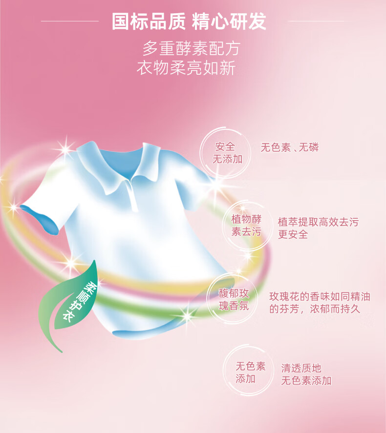 2.护衣护色配方:温和不伤衣物纤维,护色增艳;