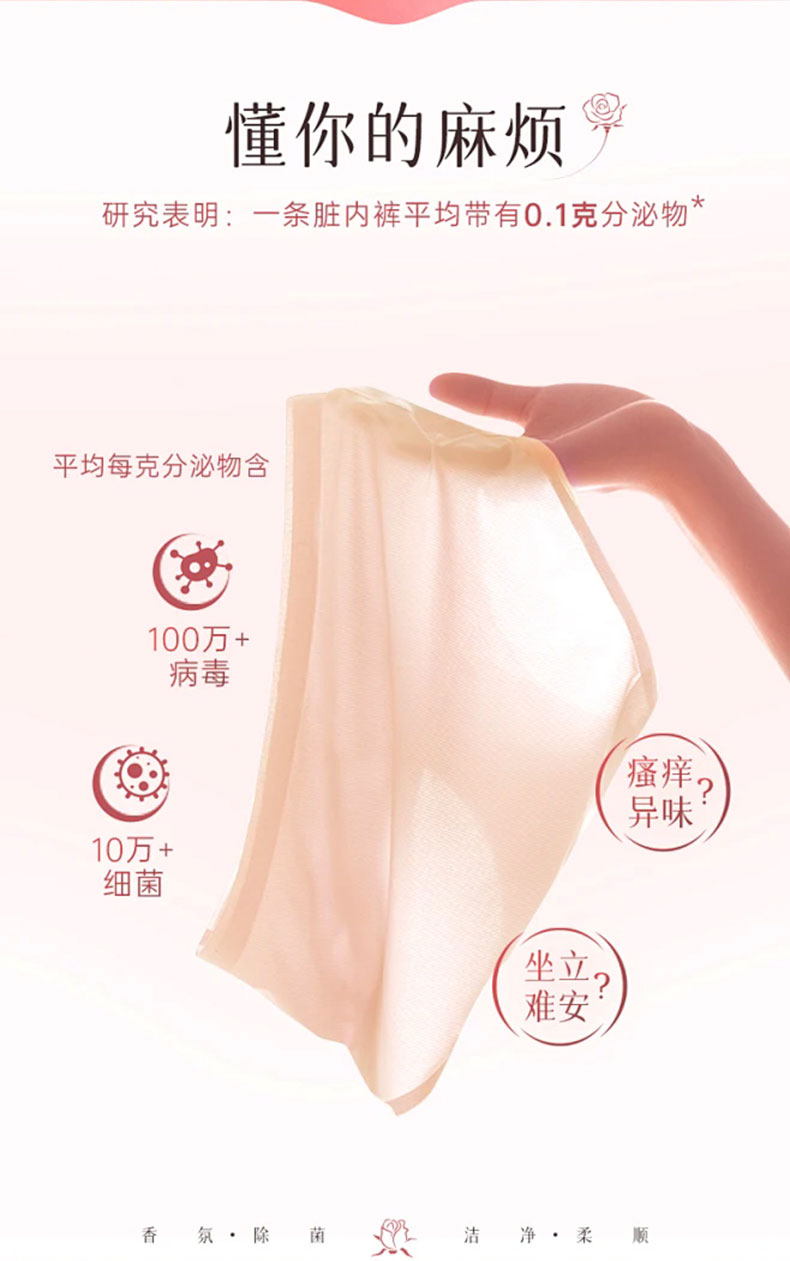 1.高效抑菌:99.9%除菌率,针对霉菌等,守护私处健康;