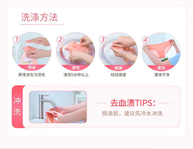 2.深层去污:分解血渍、黄渍,温和洁净不损伤内衣纤维;