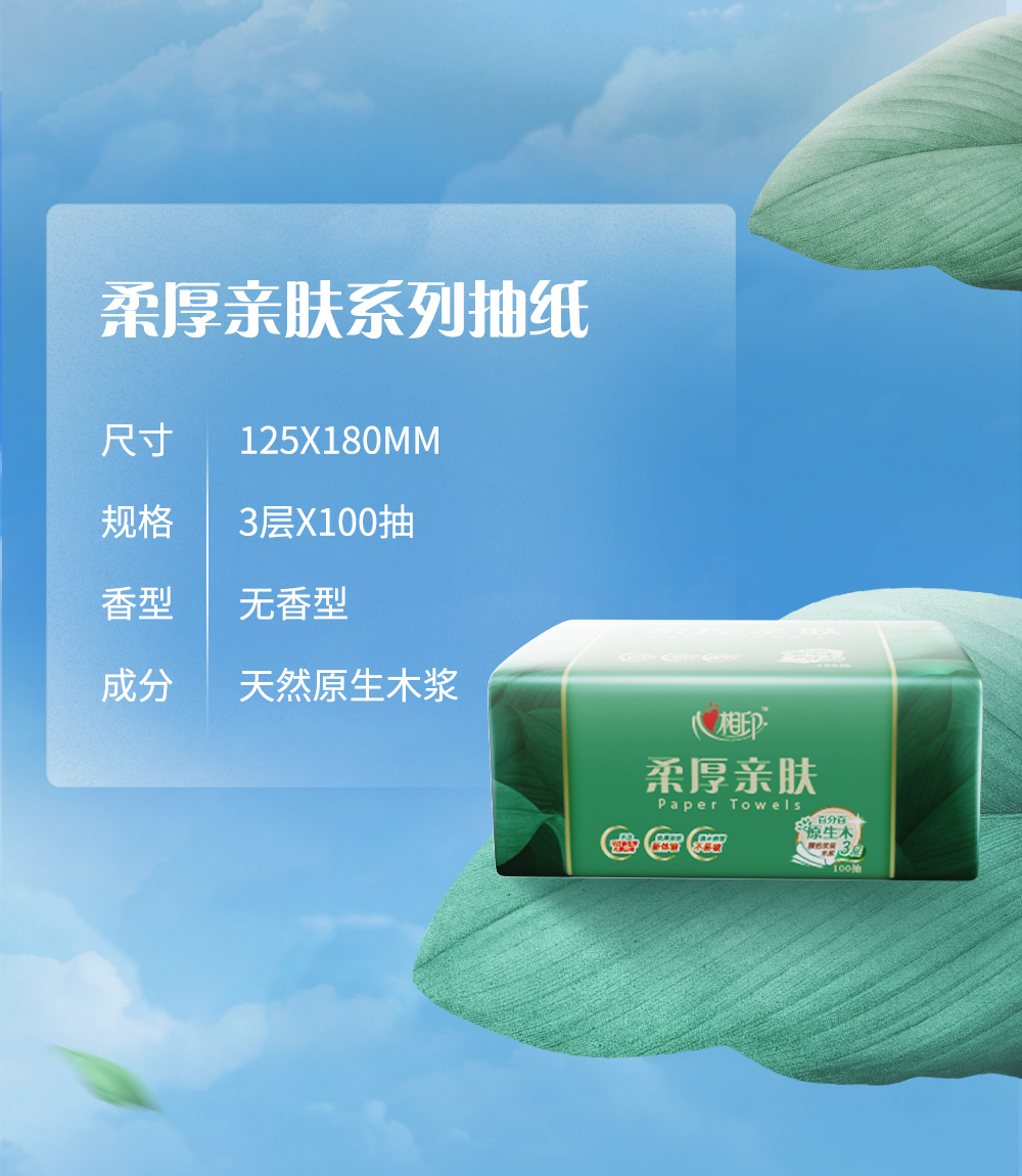 DT100(箱装)柔厚亲肤三层100抽18包塑装纸面 718014