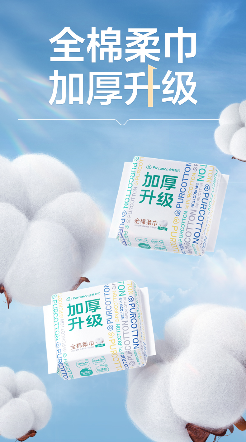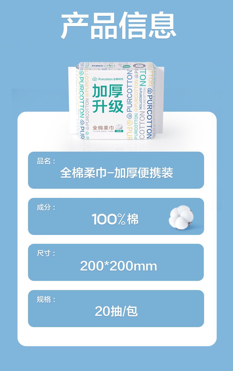 全棉时代加厚棉柔巾平纹200mm*200mm20片/包3包 1125899908249120
