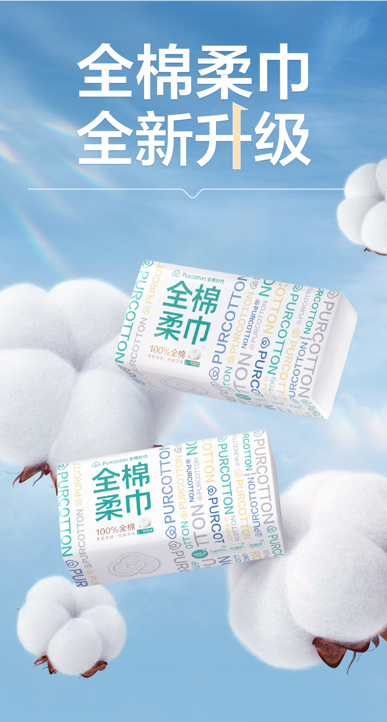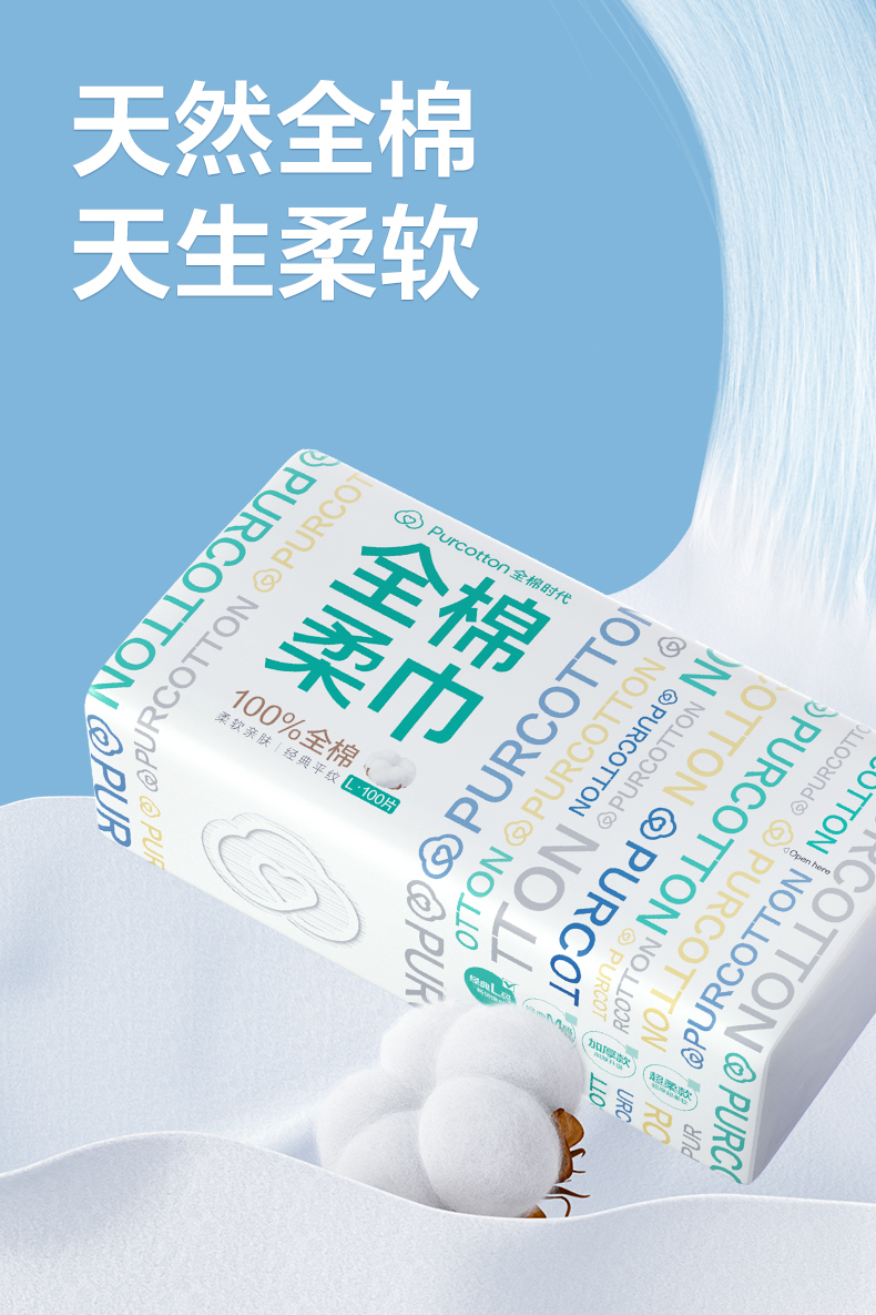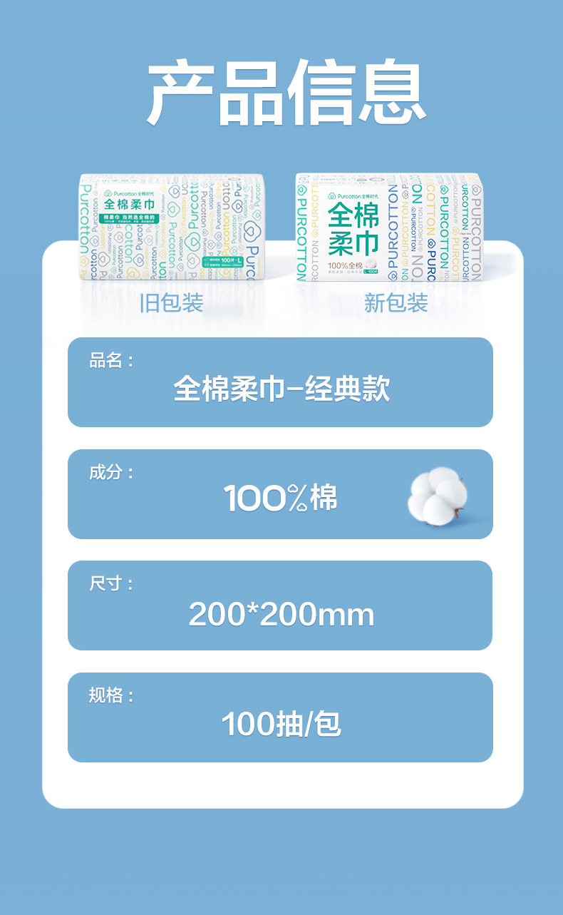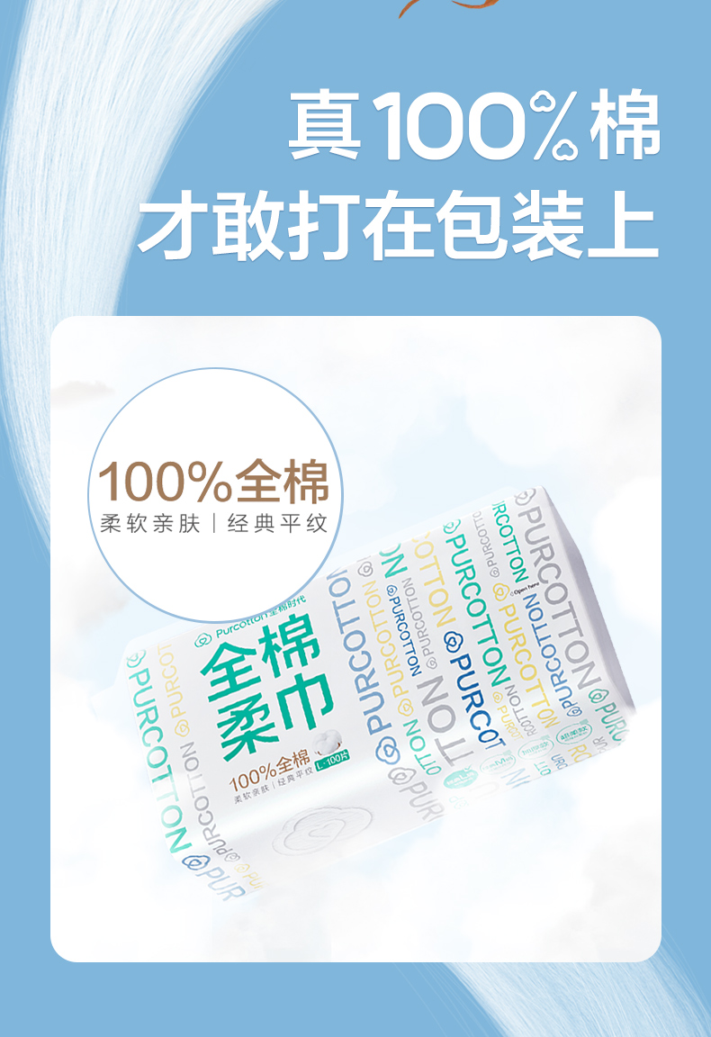 全棉时代经典系列纯棉柔巾L码45g平纹,200X200mm,100片/包 1125899908391786