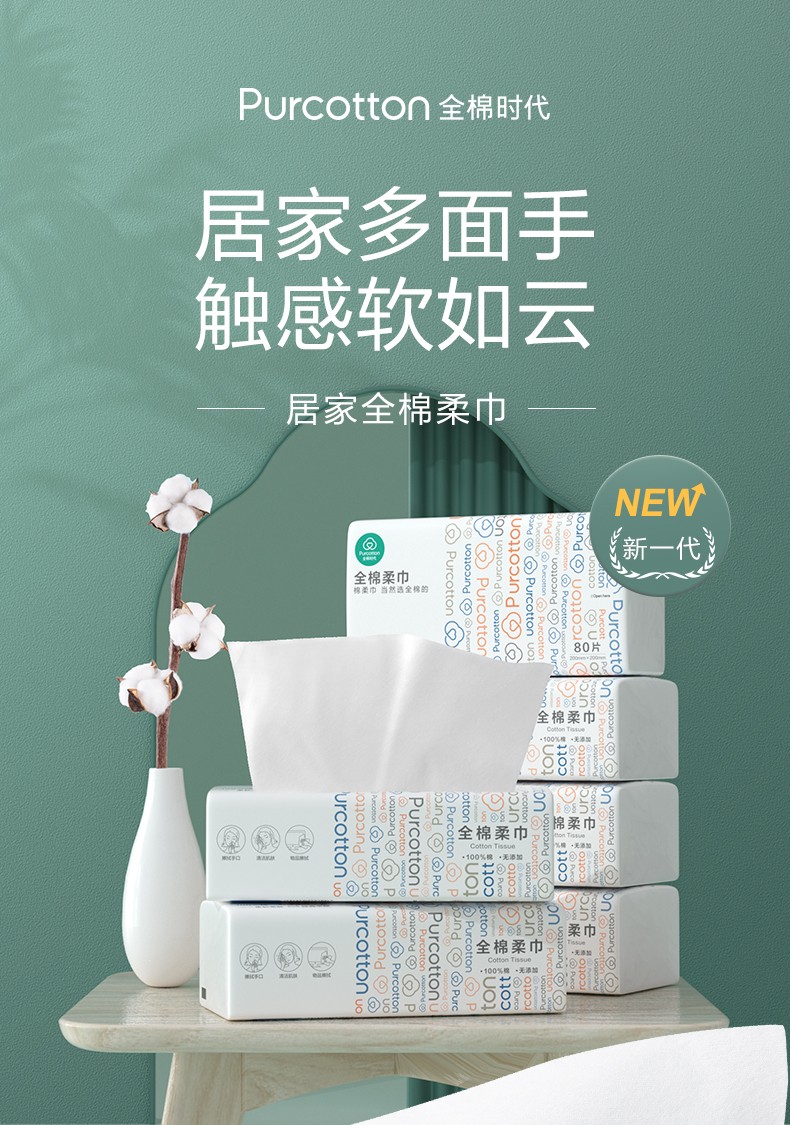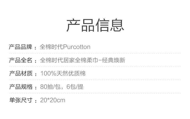 全棉时代2023全棉柔巾45gsm,200mm*200mm,80片/包,6包/袋 1125899908000680
