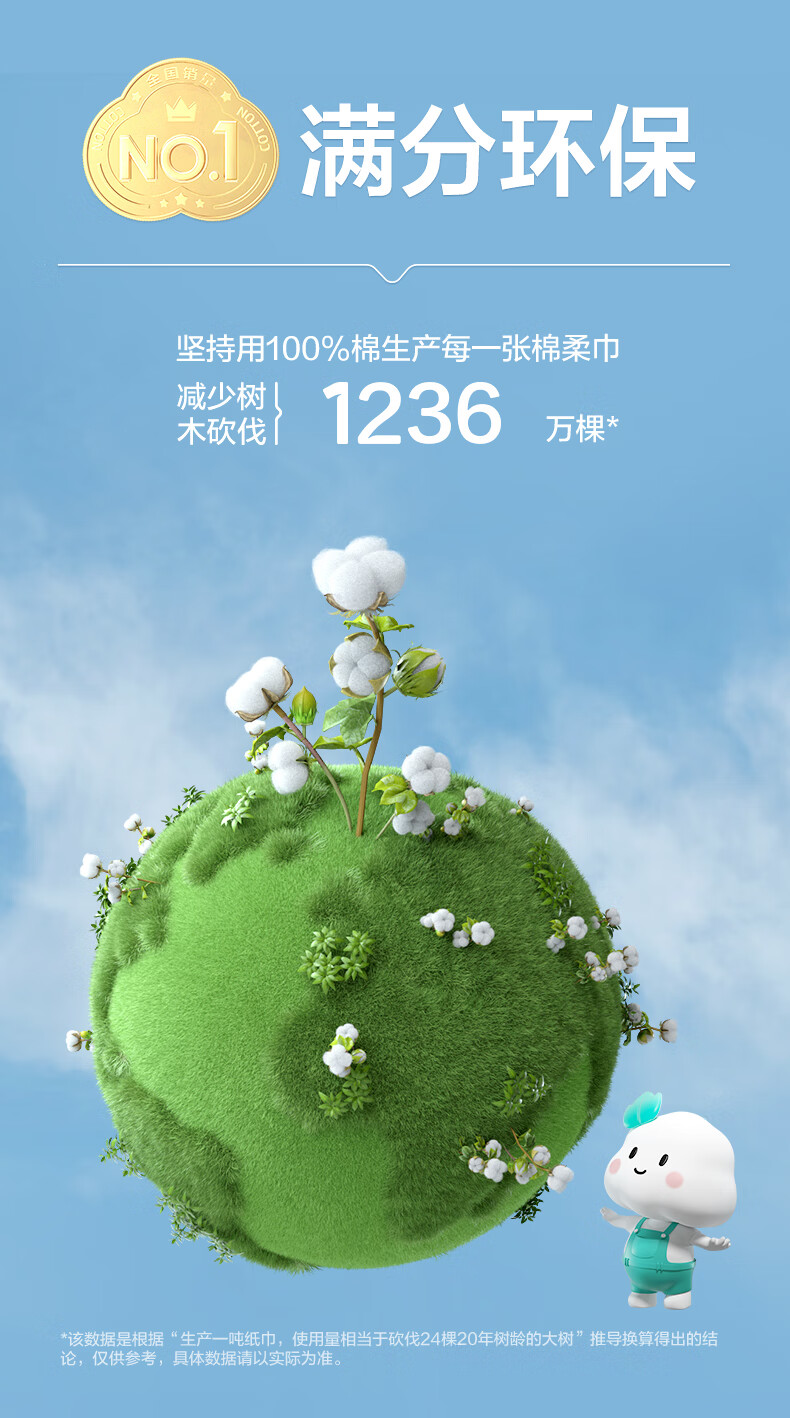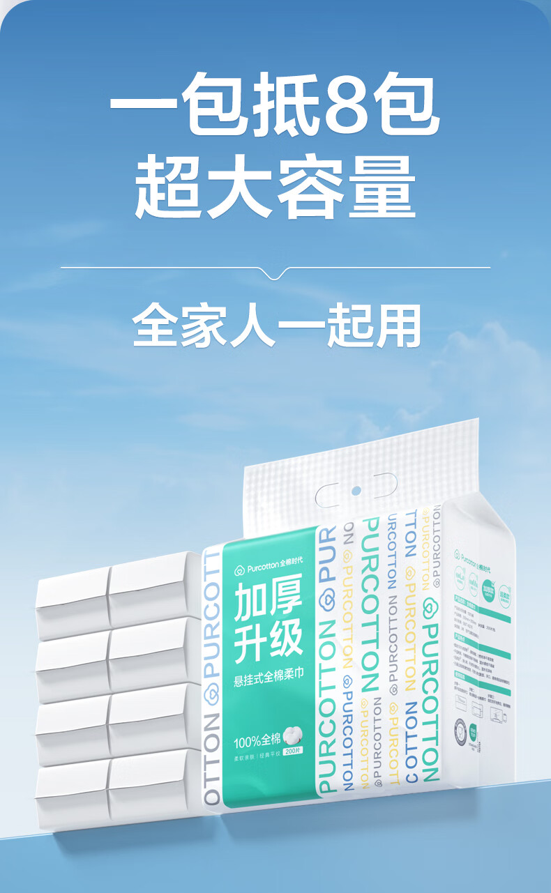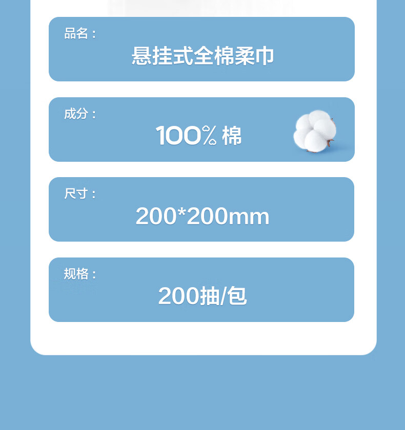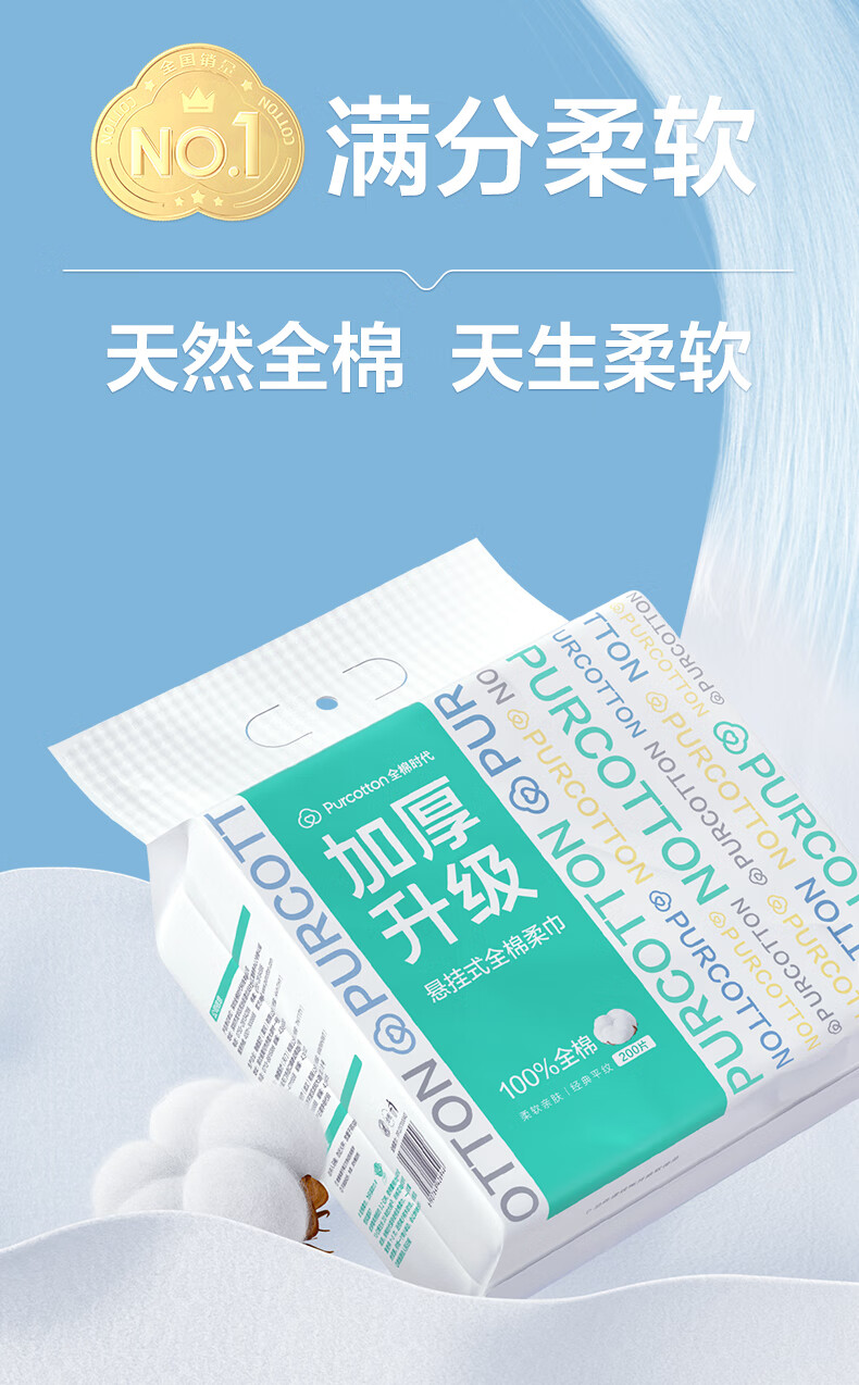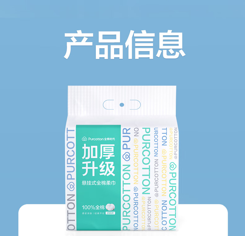 全棉时代2023全棉柔巾-加厚升级悬挂式洗脸巾60gsm,平纹,200mm*200mm,200抽/包 1125899908548050