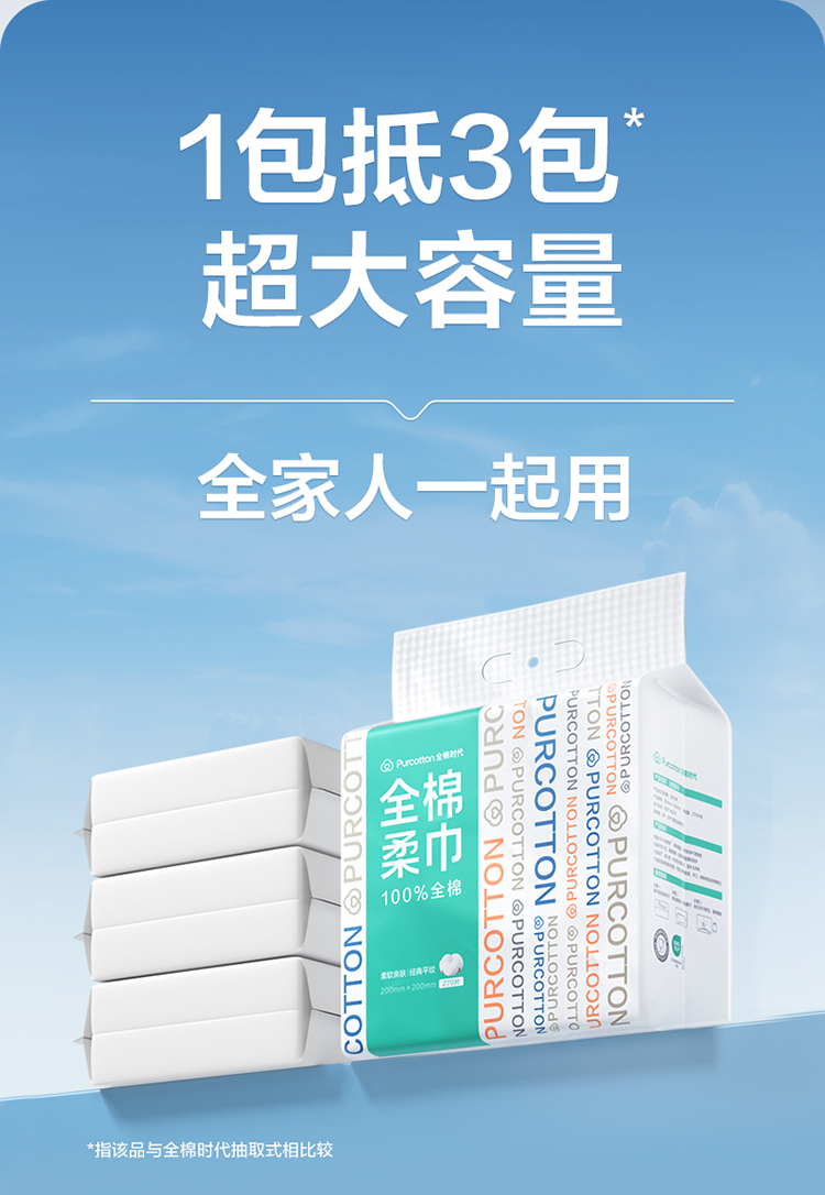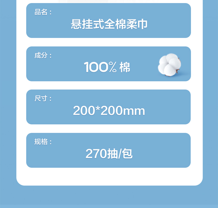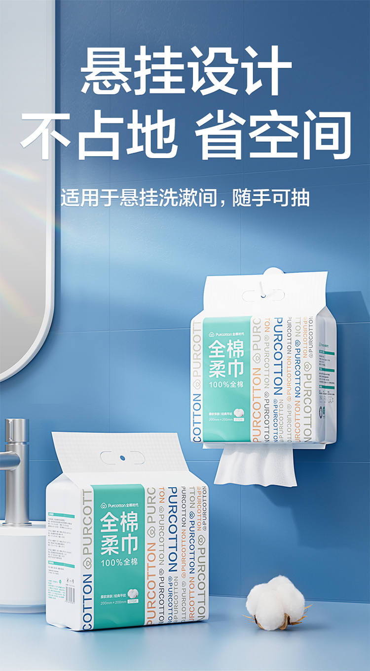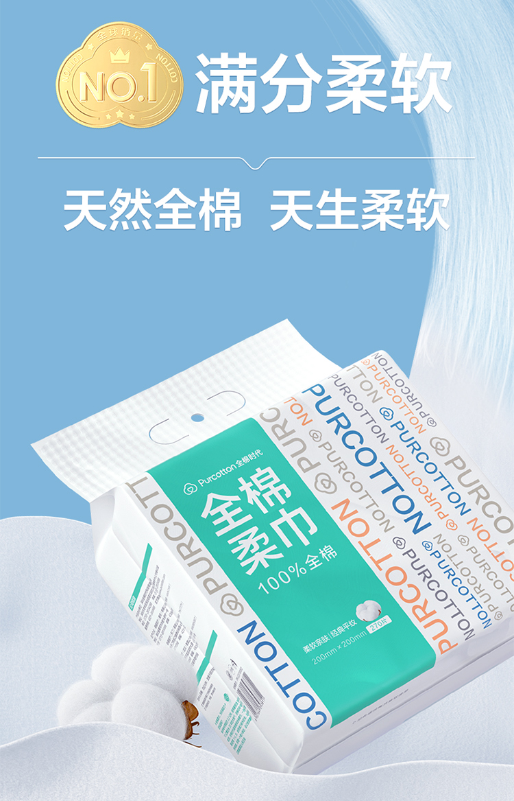 全棉时代2023悬挂式全棉柔巾-京东定制45gsm,20*20cm,270片/包 1125899908996837