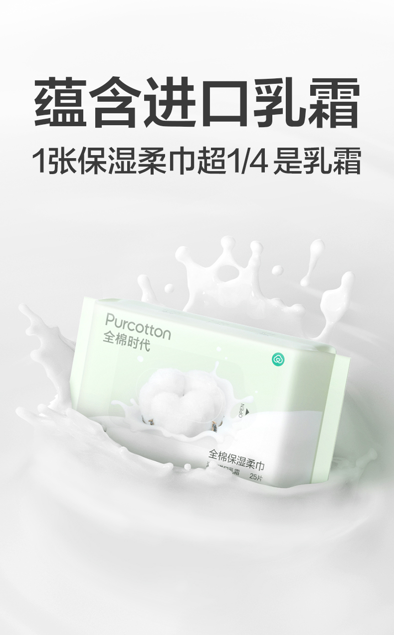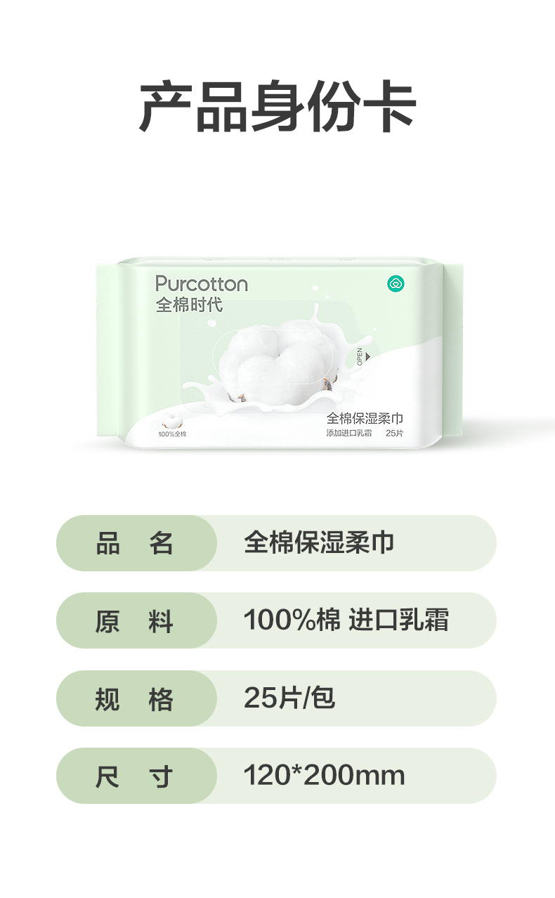 全棉时代2022全棉保湿柔巾45g平纹,200mm*120mm,25片/包,10包 1125899908280121