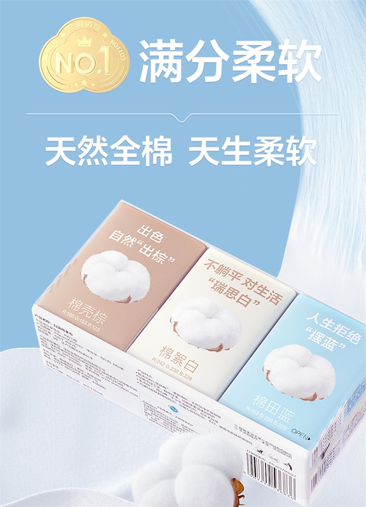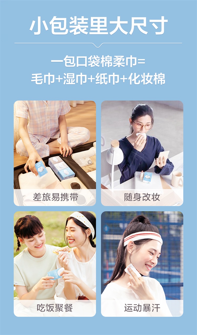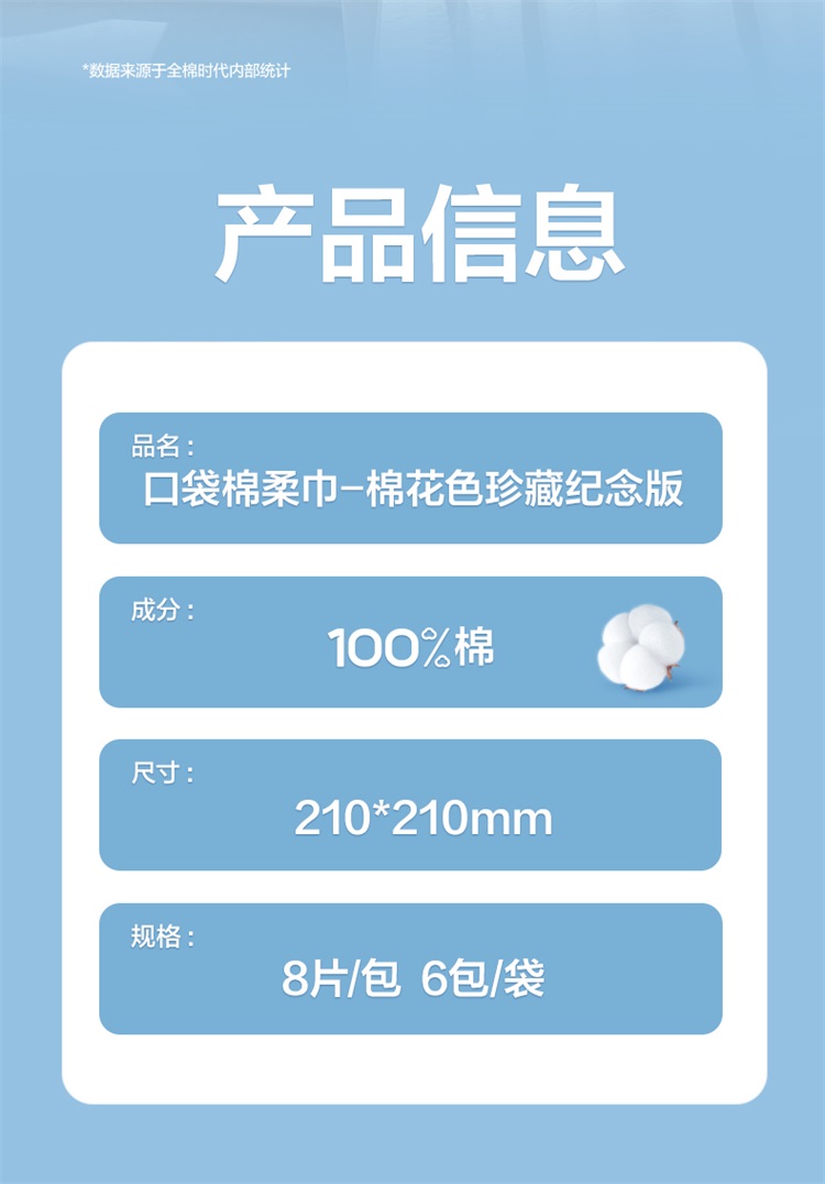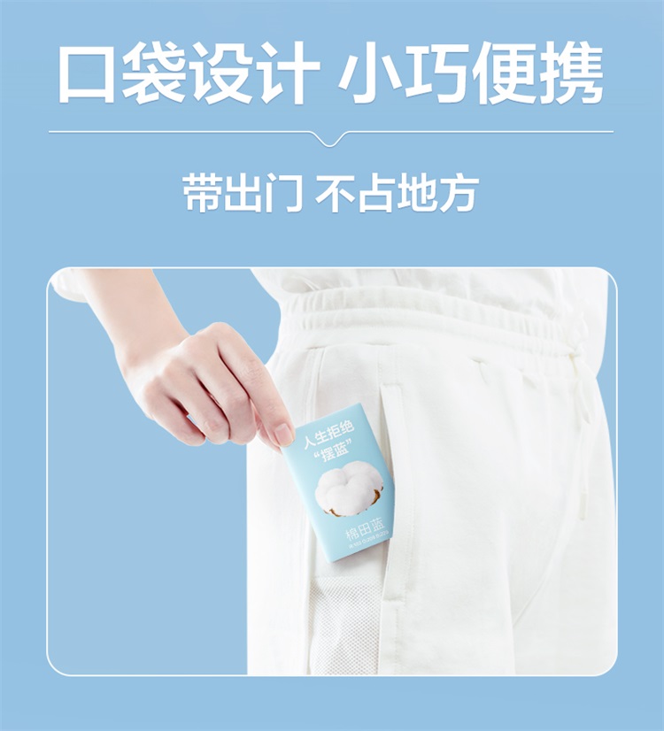 全棉时代2023口袋棉柔巾45g平纹,210mm*210mm,8片/包,6包/袋 1125899908383932