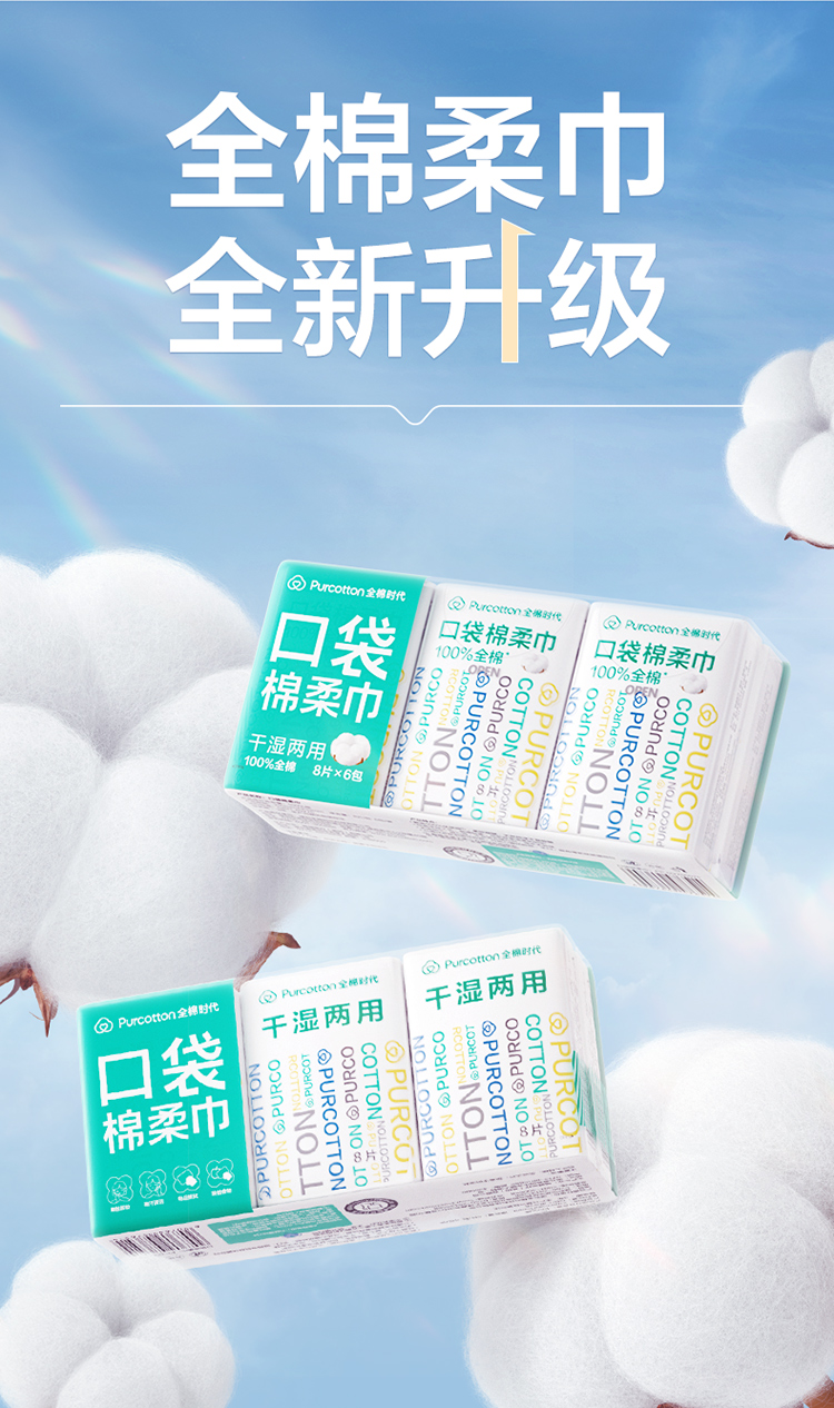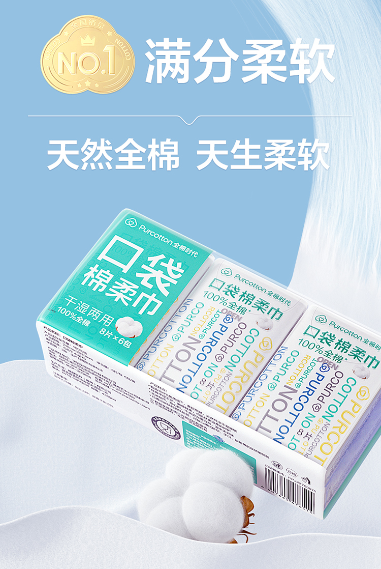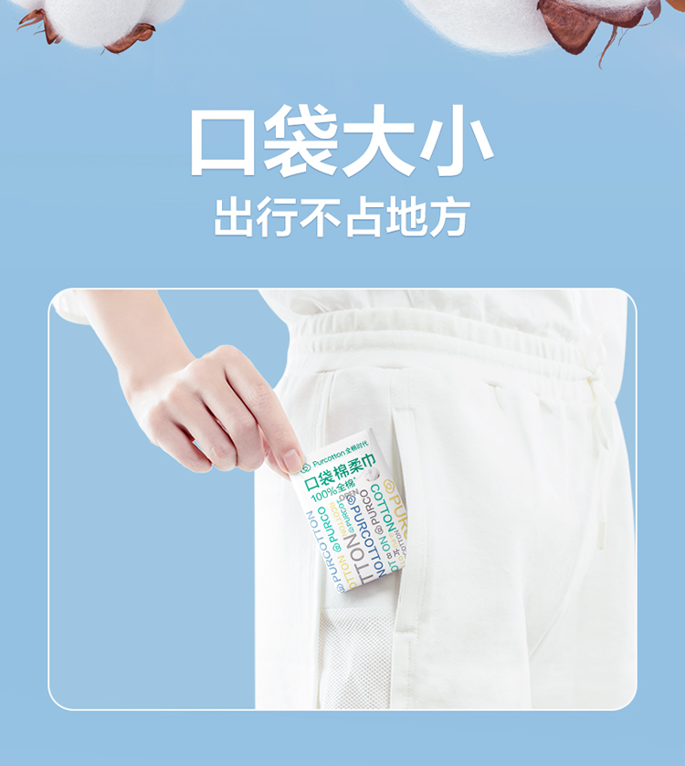 全棉时代口袋棉柔巾45g平纹210mm*210mm8片/包6包/袋3袋 1125899908521229