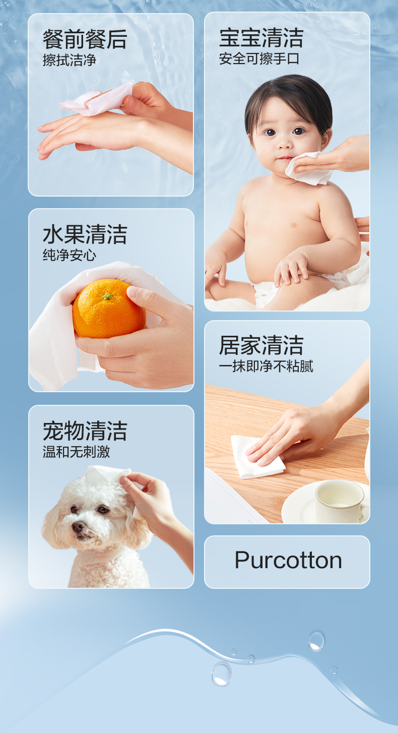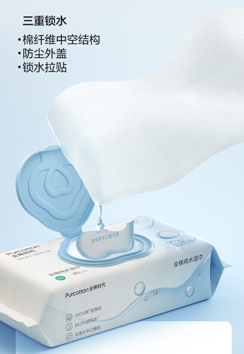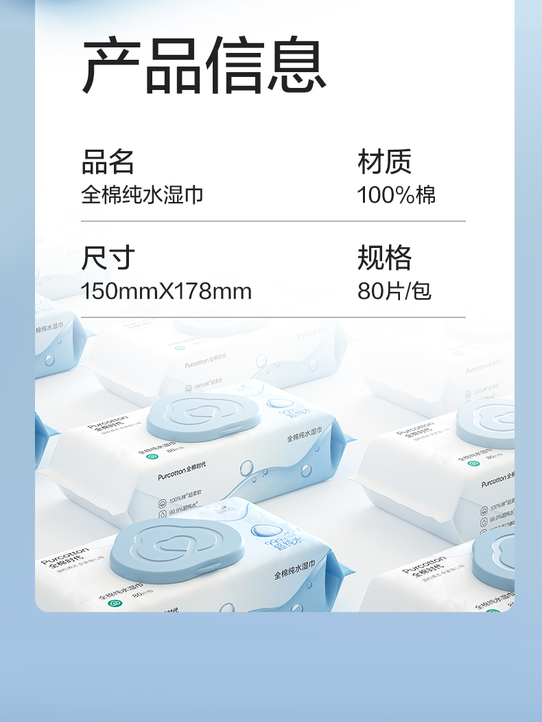 全棉时代 纯水湿巾 60gsm,178mmx150mm 80片/包,3包/袋 1125899909045565