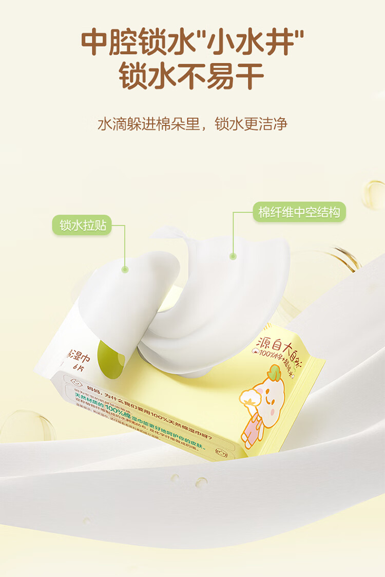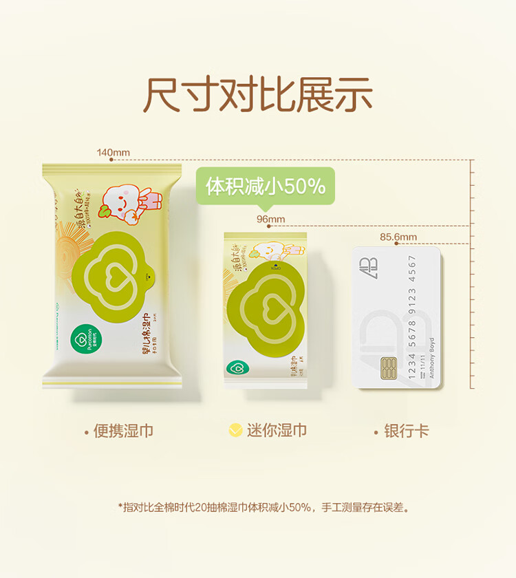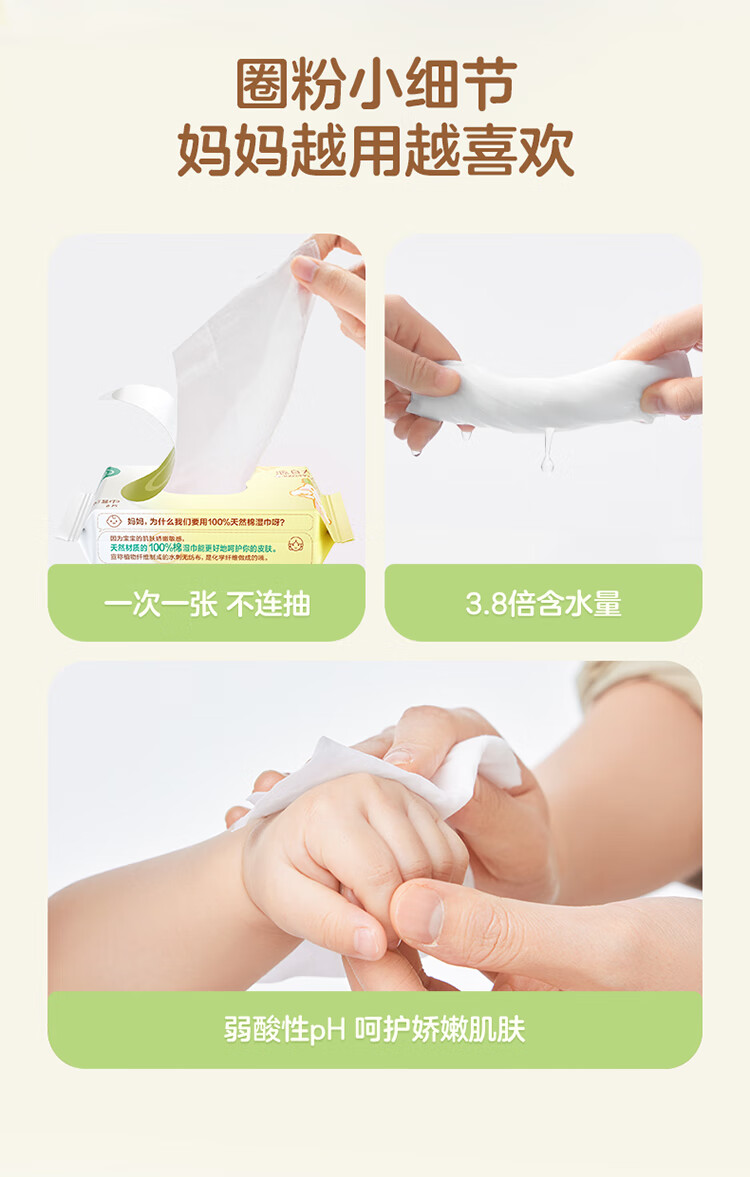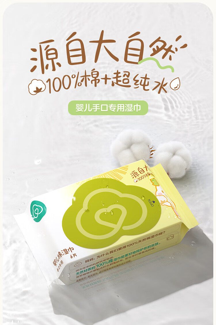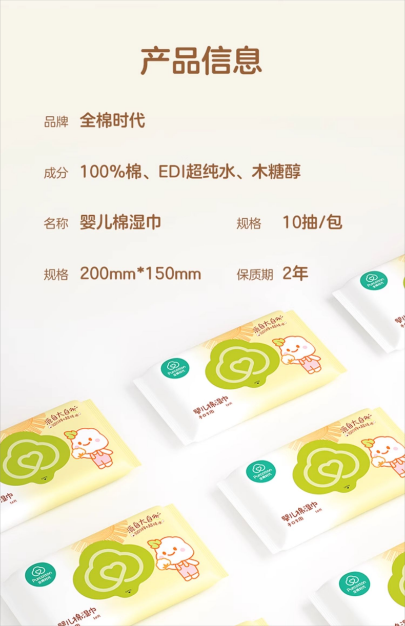 全棉时代 婴儿棉湿巾便携装65gsm,150*200mm,10片/包,10包/袋 1125899909067393