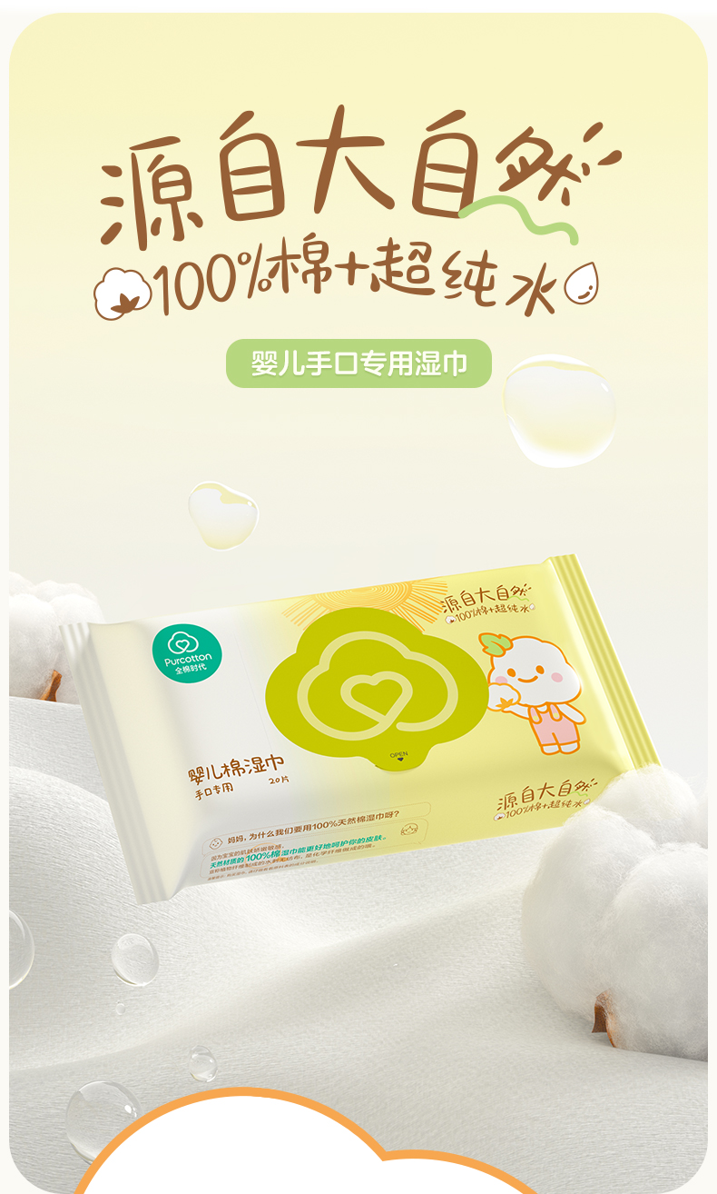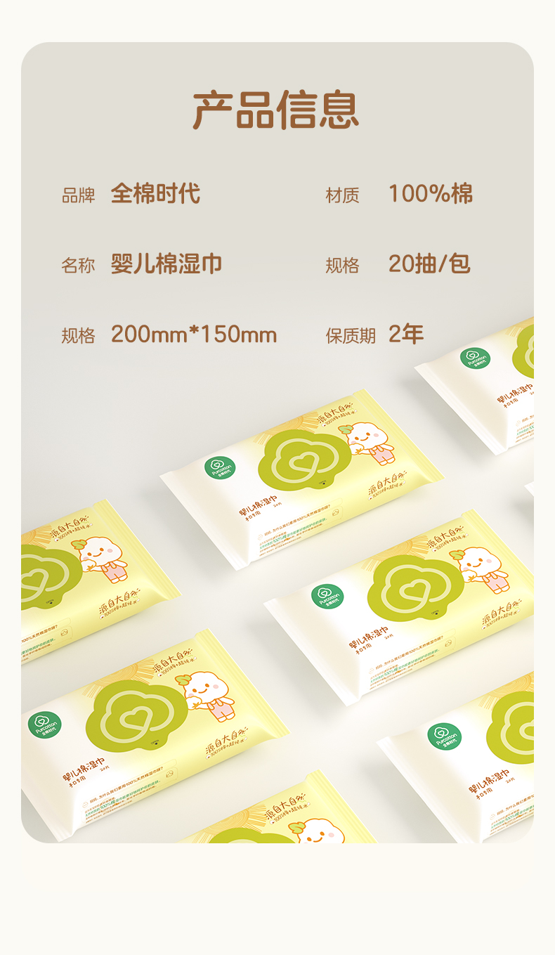 全棉时代 婴儿棉湿巾手口专用65g,150mm×200mm,20片/包 1125899909067358