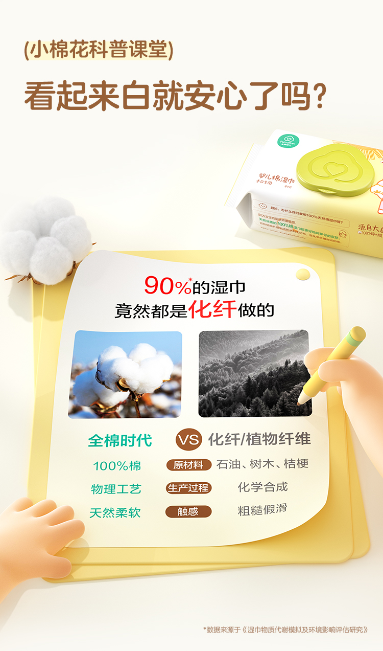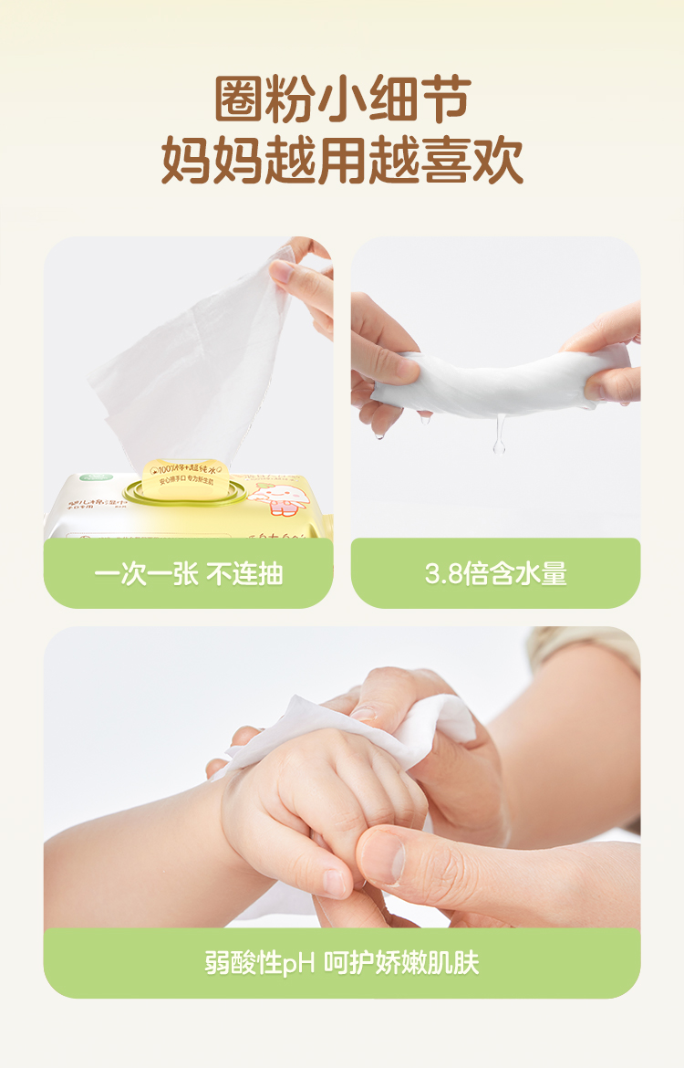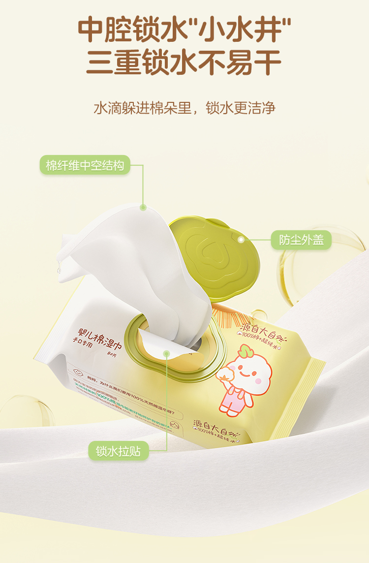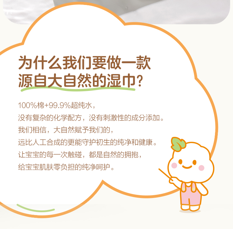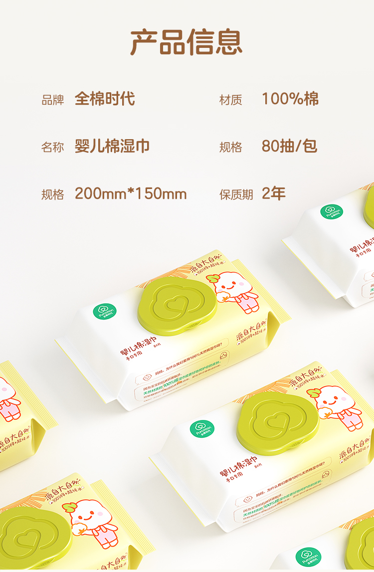 全棉时代 婴儿棉湿巾手口专用65g,150mm×200mm,80片/包 1125899909067360